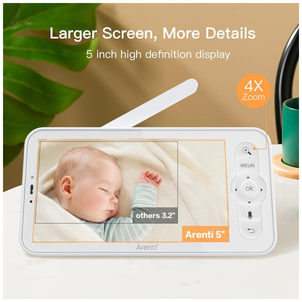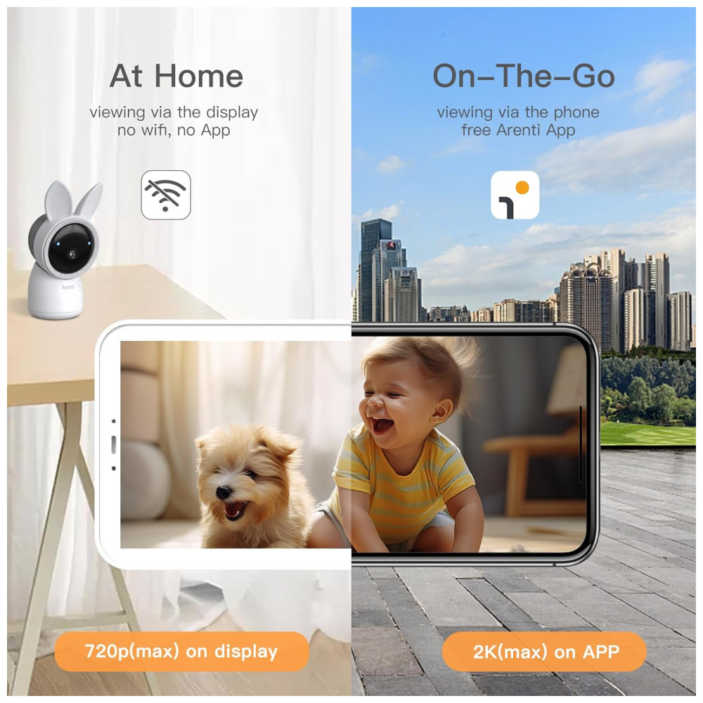 Babá Eletrônica ARENTI Resolução 2K Tela Sem Fio de 127 cm Visão Noturna Avançada Músicas Relaxantes Sensor de Movimento e Choro