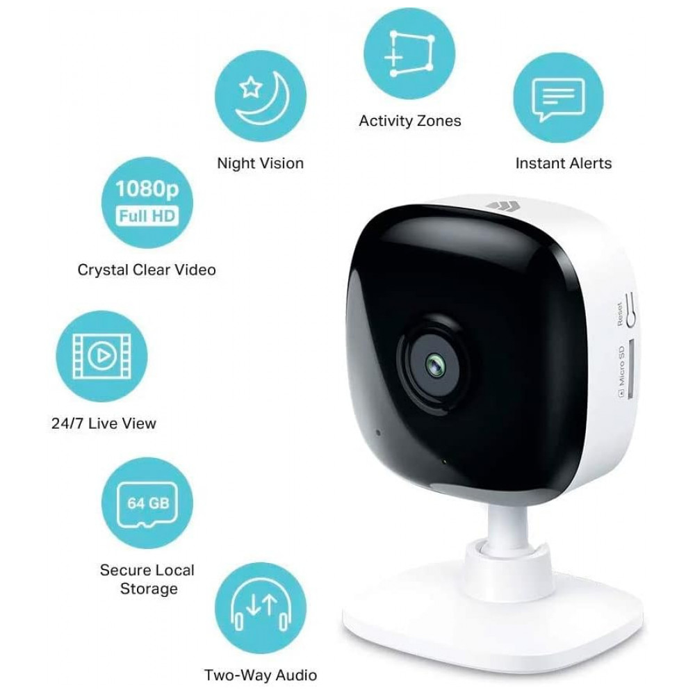 Proteja seus vídeos localmente ou com a Nuvem AWS a minicâmera EC60 grava e zena continuamente filmagens ou videoclipes em um cartão MicroSD local de até 64 GB. Você pode visualizar até 30 dias de histórico de vídeo e aproveitar recursos mais avançados ao assinar o Kasa Care Plano.