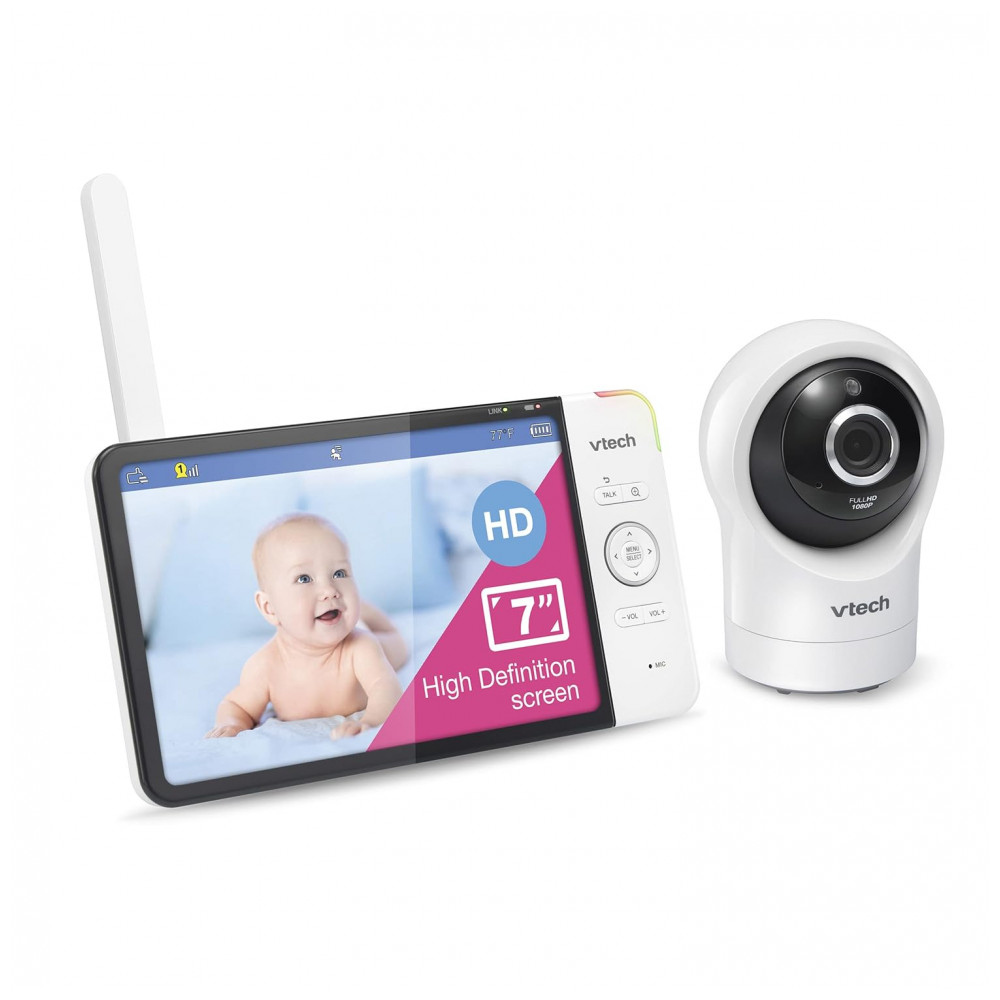 Baba Eletrônica Câmera 1080P e Monitor HD 360 720P com Visão Noturna VTECH RM7764HD Branco