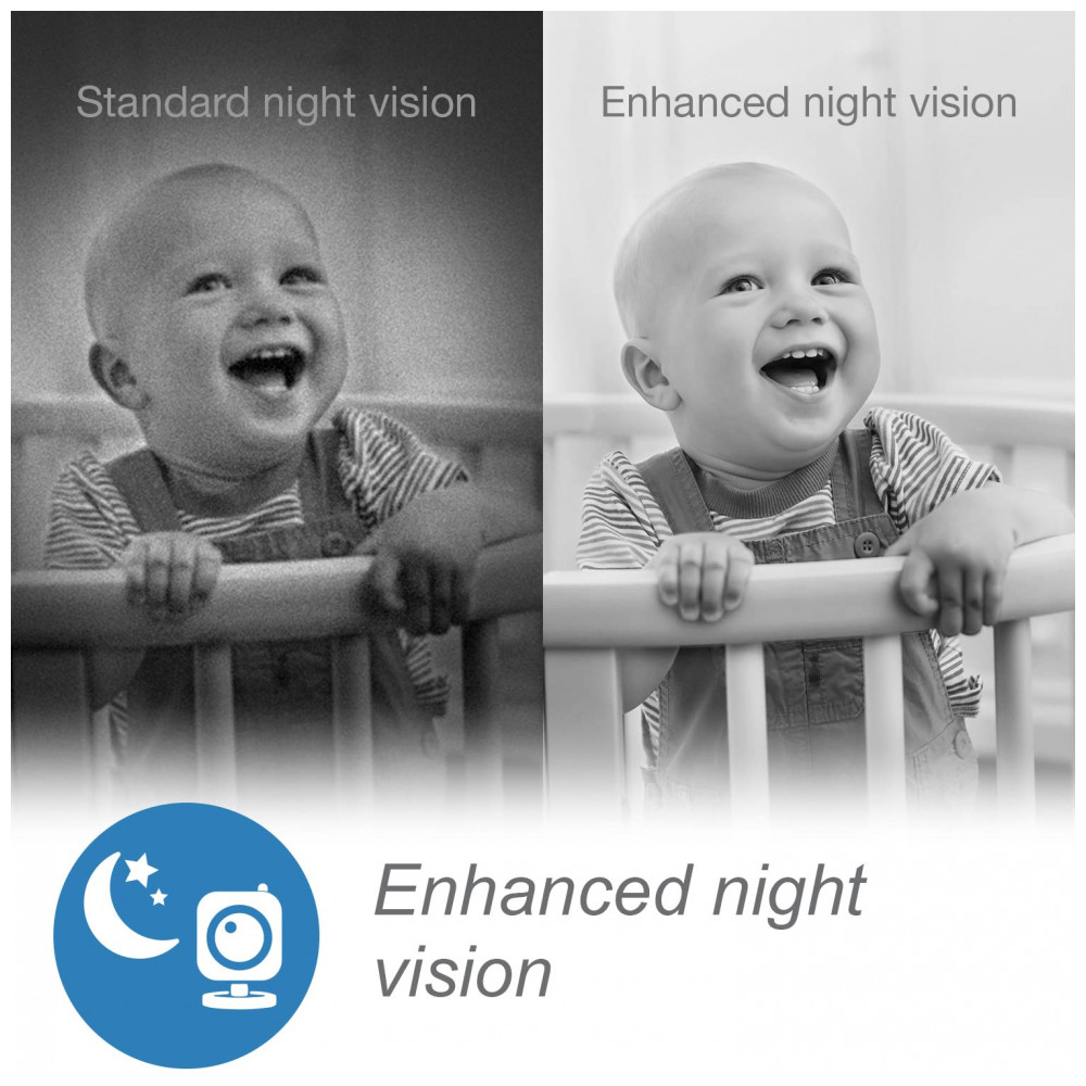 HD Night Vision Camera A tecnologia de visão noturna aprimorada permite que você veja claramente seu bebê com visão noturna infravermelha automática.
