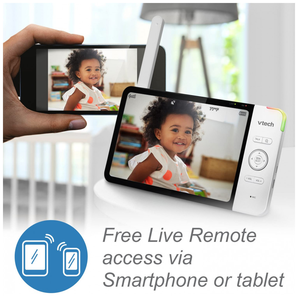 Modo Plug Play Direto. Monitoramento remoto em dispositivos iOS e Android Este sistema de monitoramento avançado é configurado para monitoramento local imediatamente. Ao mesmo tempo, aproveite a audição e visualização remota em vários dispositivos, mesmo fora de casa. Este sistema permite a visualização remota via internet através do aplicativo MyVTech Baby Pro sem taxas ou assinaturas mensais.