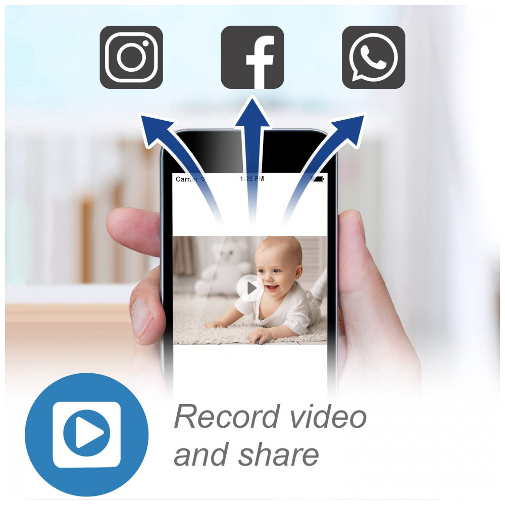 Detecção de movimento e gravação acionada A unidade da câmera possui detecção de movimento por vídeo que pode alertá lo quando necessário. Ele também pode acionar e salvar até 30 videoclipes que podem ser acessados, reproduzidos através do aplicativo MyVTech Baby Pro e até mesmo compartilhados com qualquer pessoa, se necessário.