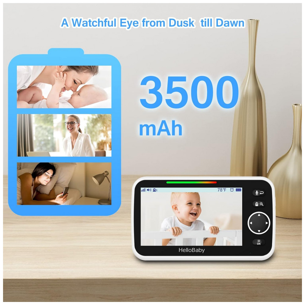 Bateria recarregável atualizada A unidade dos pais está equipada com bateria de 3500mAh, que pode funcionar continuamente por 16 horas com a tela ligada. E com o modo de economia de energia, ele pode até suportar um dia inteiro por até 30 horas.