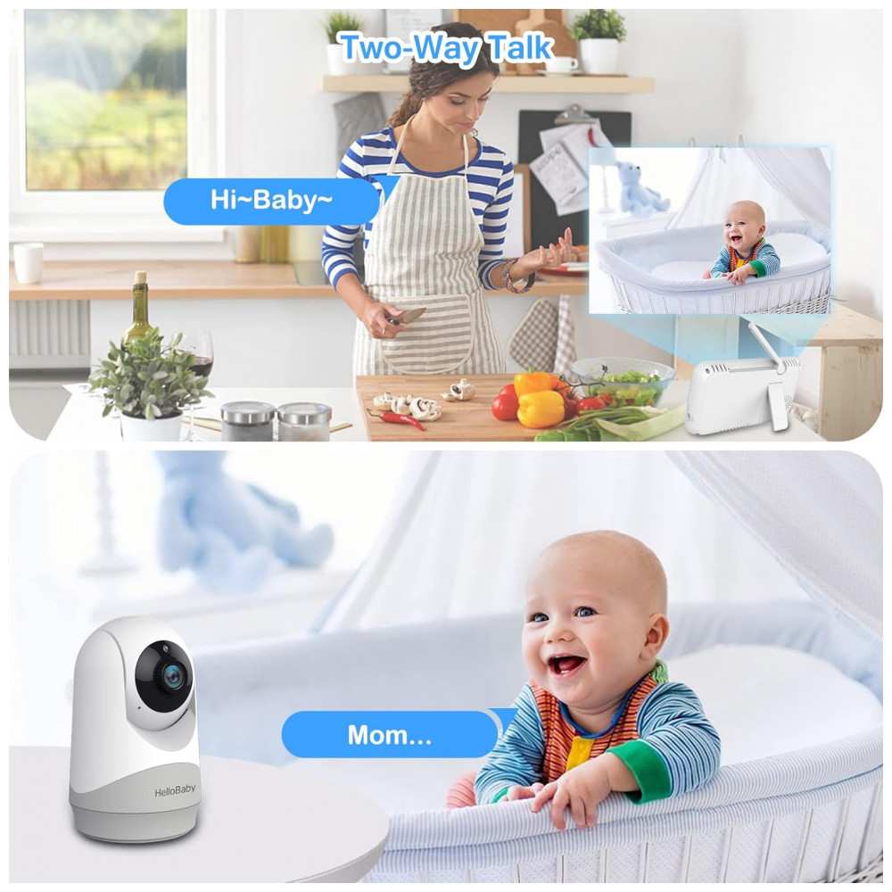 Babá Eletrônica Câmera Áudio com Zoom Remoto Panorâmica sem WiFi HelloBaby Branca