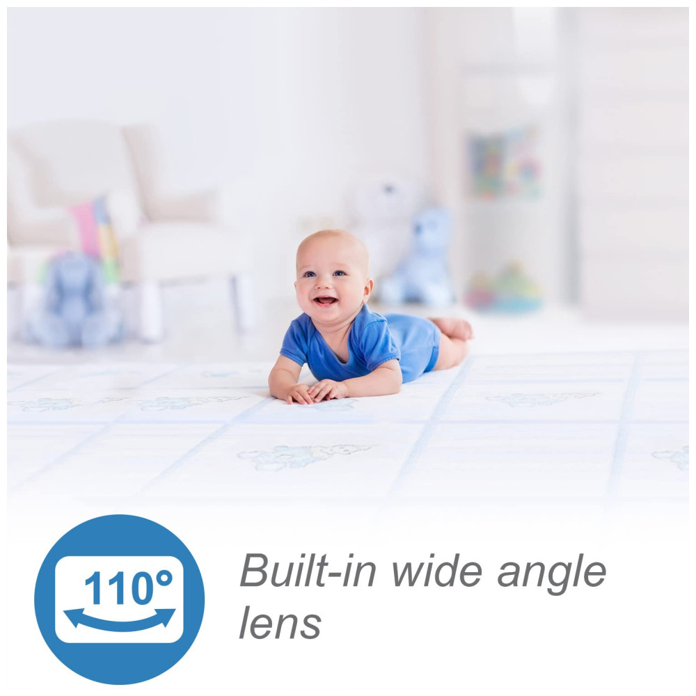 O monitor de bebê com vídeo WiFi inteligente VTech RM57642HD com 2 câmeras é um dispositivo avançado que permite que você monitore seu filho em tempo real em praticamente qualquer lugar em casa ou remotamente em seu dispositivo inteligente. Com uma resolução de 1080p FHD remoto e visualização local em 720p HD, as câmeras transmitem vídeo de alta definição 1080p, para que você possa ver claramente seu filho na unidade dos pais. O sistema inclui uma tela LCD colorida de 5 polegadas para visualização direta da unidade dos pais. A câmera possui um ângulo de visão HV de 178H178V e a lente grande angular de 110 graus permite visualização panorâmica de 360 graus e visualização até 100 graus para cima e para baixo. Além disso, a câmera apresenta sons suaves e canções de ninar que tocam diretamente na unidade da câmera para ajudar o bebê a dormir bem. Mesmo depois de escurecer, você poderá ver seu bebê claramente graças à visão noturna infravermelha automática. O sensor de temperatura integrado avisa você com um alerta se o berçário estiver ficando muito quente ou frio para que você possa ajustar o termostato. O sistema também inclui intercomunicador bidirecional local e remoto, permitindo que você converse com seu bebê em qualquer cômodo com o interfone integrado na unidade portátil dos pais ou em qualquer lugar usando o aplicativo MyVTech Baby Pro no smartphone.