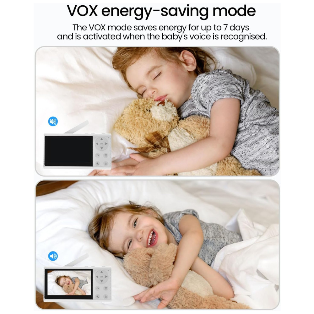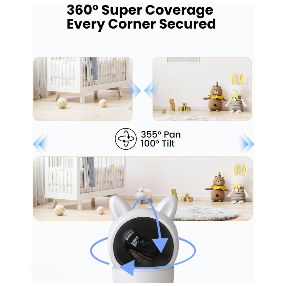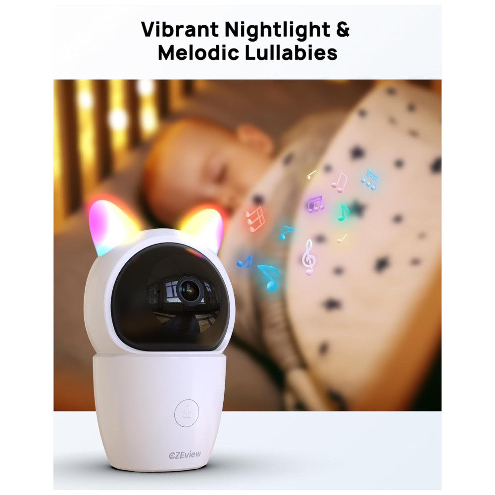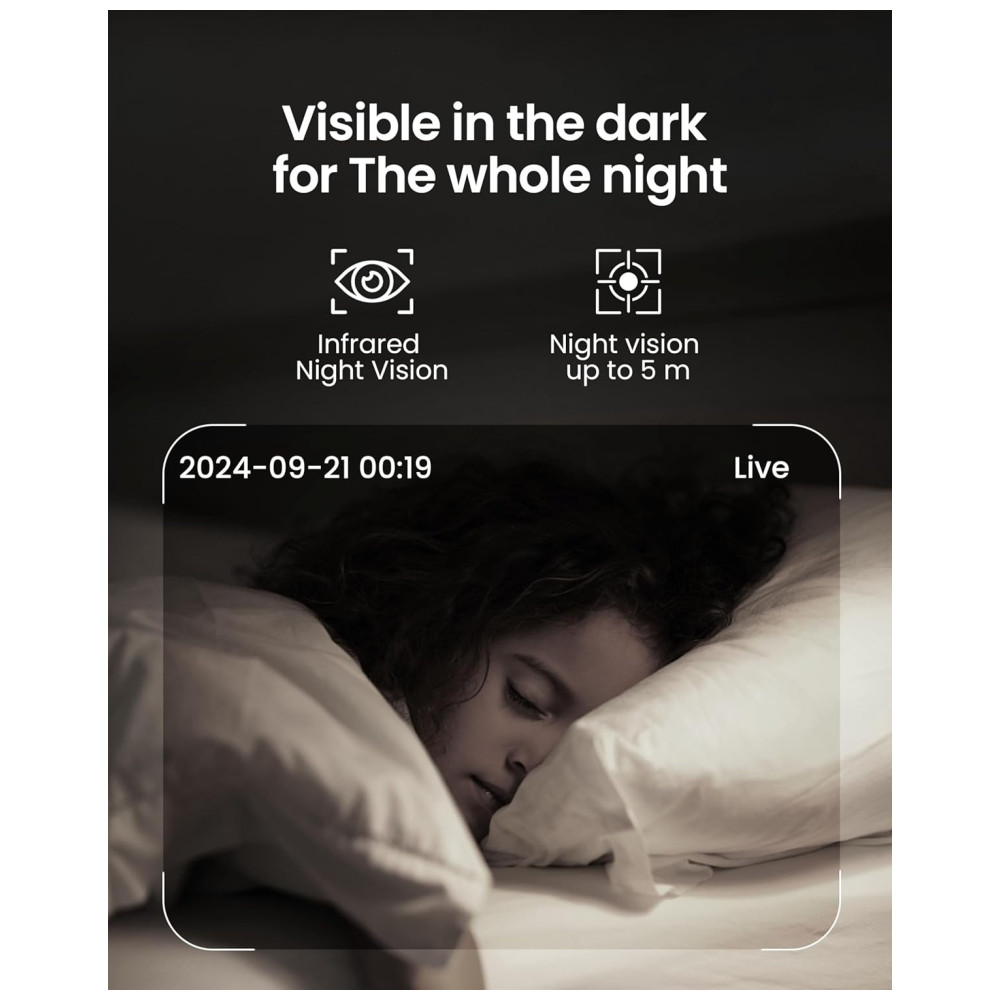 Com visão noturna aprimorada, você pode monitorar seu bebê mesmo em ambientes escuros. Luzes noturnas coloridas e canções de ninar ajudam a manter seu bebê calmo e confortável. Além disso, sensores de temperatura e umidade monitoram o ambiente e enviam lembretes de alimentação para garantir o bem-estar do seu bebê.