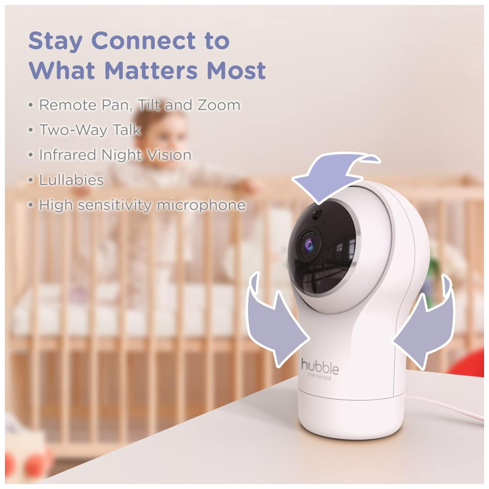 CÂMERA MONITOR DE BEBÊ REMOTA: A câmera monitor de bebê Hubble View Pro oferece liberdade para câmera Zoom, Tilt e Pan remotamente da própria unidade dos pais, para o ângulo de visão perfeito para os pais. A câmera garante que você possa ver seu bebê claramente de qualquer ângulo ao pressionar um botão, permitindo que você esteja sempre ao lado deles, criando um cofre, ambiente acolhedor para o seu filho e dá a você, pai, paz de espírito