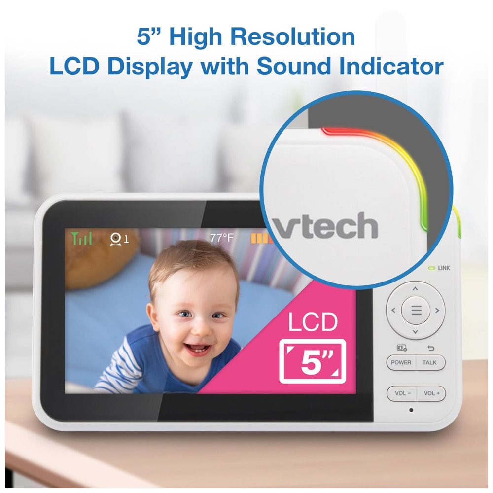 Observe seu bebê com facilidade usando o monitor de vídeo digital para bebês VTech VM9242 com Pan Tilt e uma tela LCD de alta resolução de 5 polegadas. Com a unidade dos pais de longo alcance, você pode se mover livremente pela casa enquanto mantém um olho no berçário. A câmera panorâmica, inclinada e com zoom da unidade dos pais permite que você veja todos os ângulos do berçário, incluindo ampliação de até 1,33 vezes. Você também pode escolher entre várias opções de visualização, incluindo visualização única, visualização dividida simultaneamente, visualização de ambas as câmeras lado a lado ou modo de patrulha visualização única que faz a transição para uma câmera diferente a cada 10 segundos.