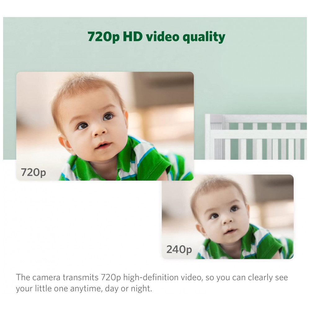 Tela LCD HD de 5 720p A câmera transmite vídeo de alta definição, para que você possa ver claramente o seu pequeno na tela do visualizador pai de LCD em cores HD de 12 centímetros e 720p.