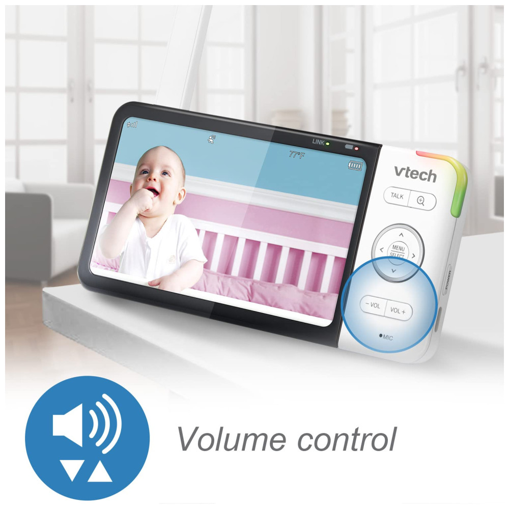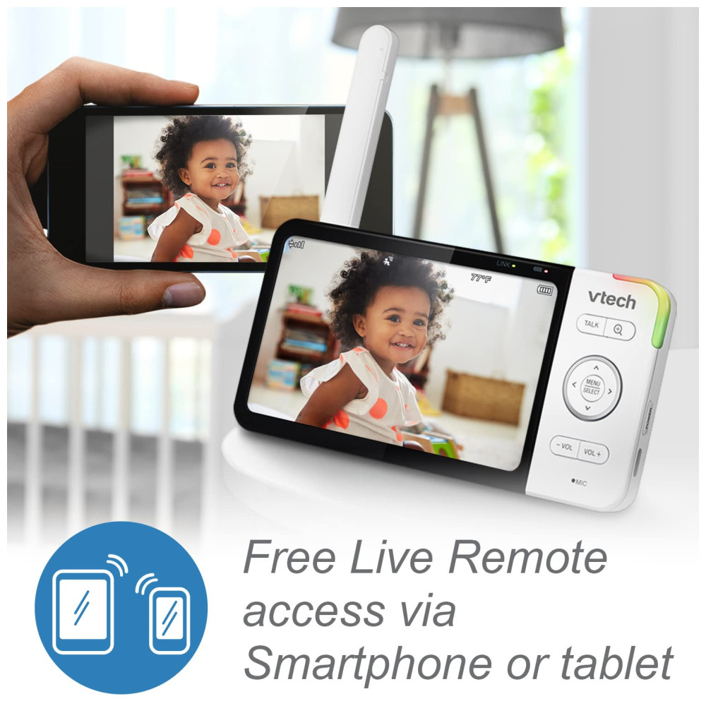 Babá Eletrônica com Acesso Remoto WiFi Tela HD 720P Visão Noturna Sons Suaves Sensor de Temperatura e Mais VTech RM5764HD
