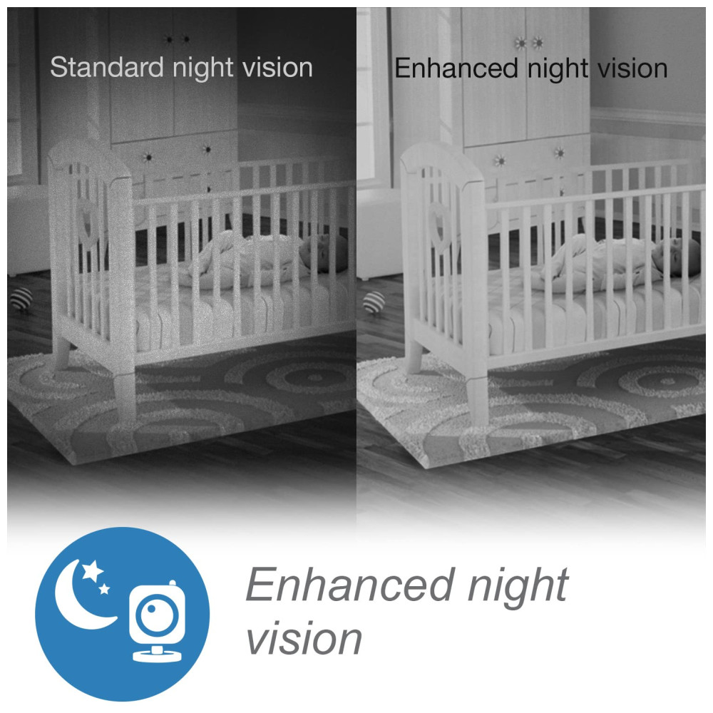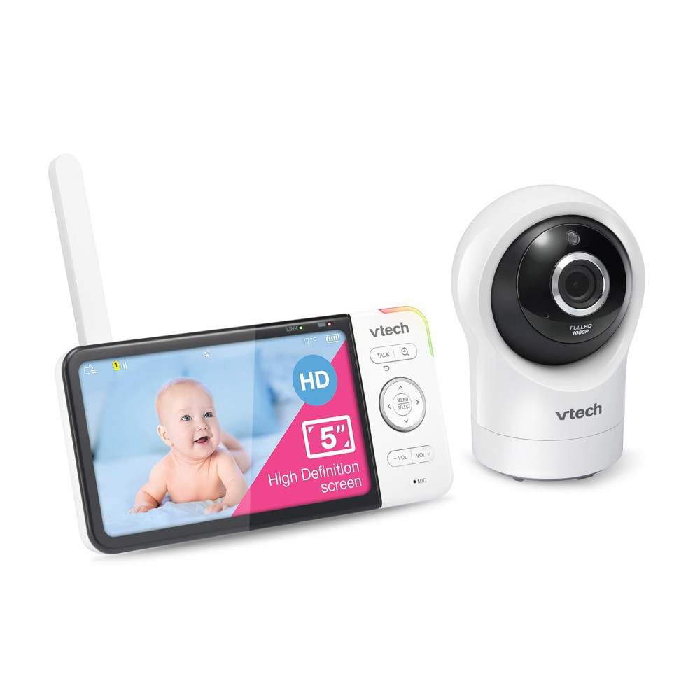 O monitor de bebê com vídeo WiFi inteligente VTech RM5764HD é uma ótima opção para pais que desejam acompanhar seus filhos de praticamente qualquer lugar em casa ou remotamente em seu dispositivo inteligente. Com cinco unidades dos pais em alta definição ou no aplicativo MyVTech Baby, é possível assistir ao seu filho em tempo real, experimentando vídeos nítidos e de alta definição no dispositivo iOS ou Android. A câmera apresenta uma rotação de 360 graus de um lado para o outro, inclinação de até 80 graus para cima e para baixo e ampliação de até 10 vezes com o aplicativo móvel ou 4 vezes a partir do visualizador. A câmera também possui sons suaves e canções de ninar que tocam diretamente na unidade da câmera para ajudar o bebê a dormir bem. A visão noturna infravermelha automática permite que você veja seu bebê claramente mesmo depois de escurecer. Além disso, o sensor de temperatura integrado avisará você com um alerta se o berçário estiver ficando muito quente ou frio para que você possa ajustar o termostato. O monitoramento remoto é possível em dispositivos iOS Android e o modo Plug Play Direto permite que o sistema seja configurado para monitoramento local imediatamente. A câmera transmite vídeo de alta definição 1080p, para que você possa ver claramente seu filho na unidade dos pais. A tela LCD colorida de 720p de 5 polegadas incluída permite ver claramente cada movimento direto da unidade dos pais. A lente grande angular de 110 graus permite obter visualização panorâmica de 360 graus e visualizar até 100 graus para cima e para baixo. É possível aumentar o zoom em até 10X para se sentir próximo do bebê. A tecnologia aprimorada de visão noturna permite que você veja claramente seu bebê com visão noturna infravermelha automática. A unidade da câmera possui detecção de movimento por vídeo que pode alertá lo quando necessário. Ele também pode acionar e salvar até 30 videoclipes que podem ser acessados, reproduzidos através do aplicativo MyVTech Baby Pro e até mesmo compartilhados com qualquer pessoa, se necessário. É possível criar um ambiente confortável e agradável para o bebê com temperatura certa e sons naturais, canções de ninar para acalmar os sentidos. O intercomunicador bidirecional local e remoto permite confortar o bebê em qualquer cômodo com o interfone integrado na unidade portátil dos pais ou em qualquer lugar usando o aplicativo MyVTech Baby Pro no smartphone.