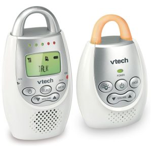 Babá Eletrônica com Alcance de 300 Metros Alerta Vibratório Intercomunicador e Luz NoturnaVETCH DM221Branco/Prata