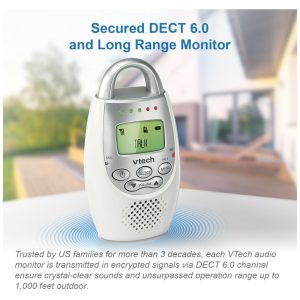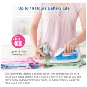 Apresentando a Babá Eletrônica com tecnologia DECT 6.0, que oferece áudio claro e elimina ruídos indesejados, garantindo uma comunicação limpa enquanto você se move pela casa. Com alcance de até 300 metros, você pode monitorar seu bebê de qualquer cômodo.