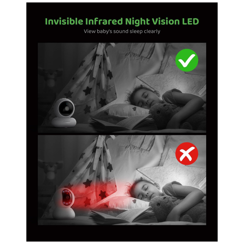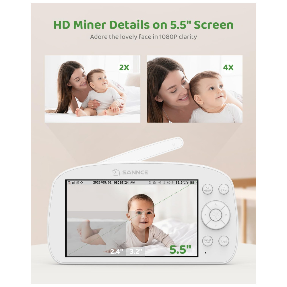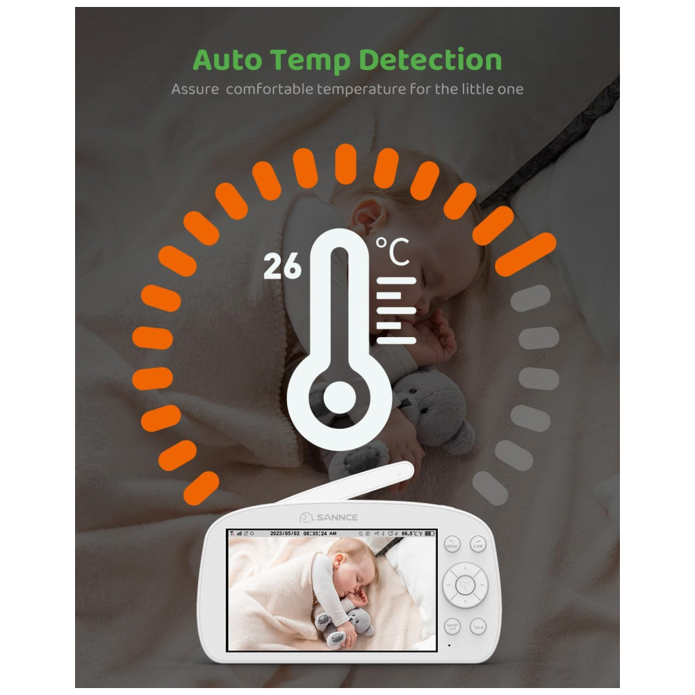 Babá Eletrônica com Câmera 1080P Luz Noturna Alarme de Temperatura Alcance de 304M e Mais SANNCE Branca
