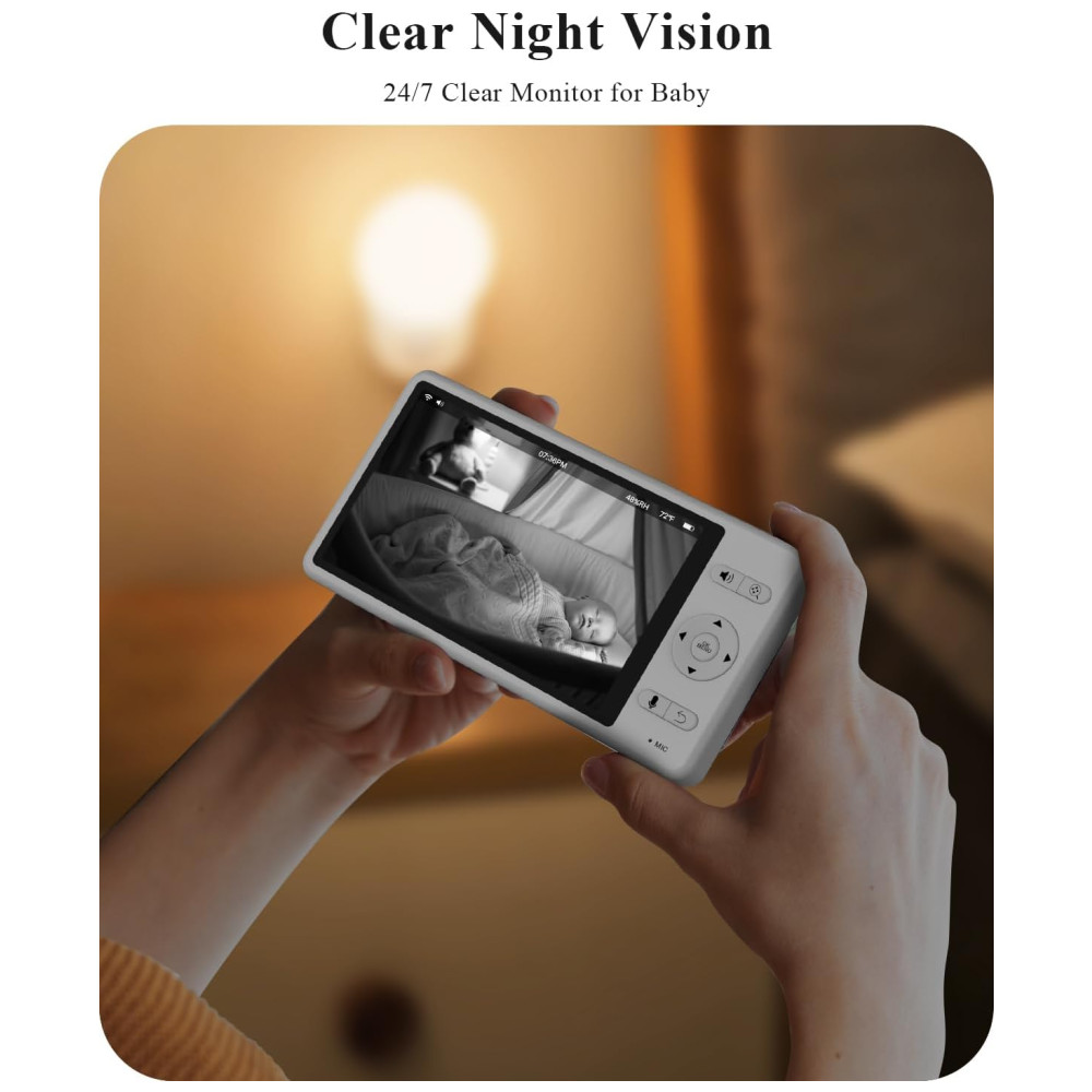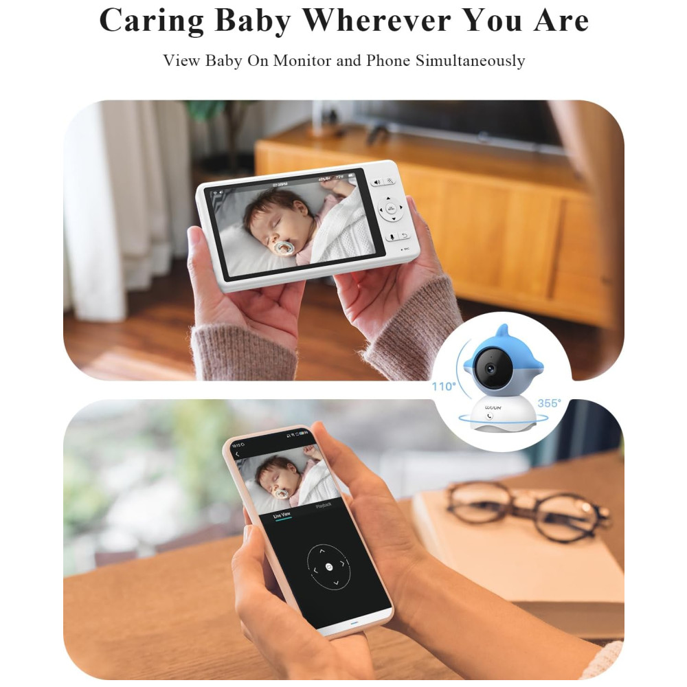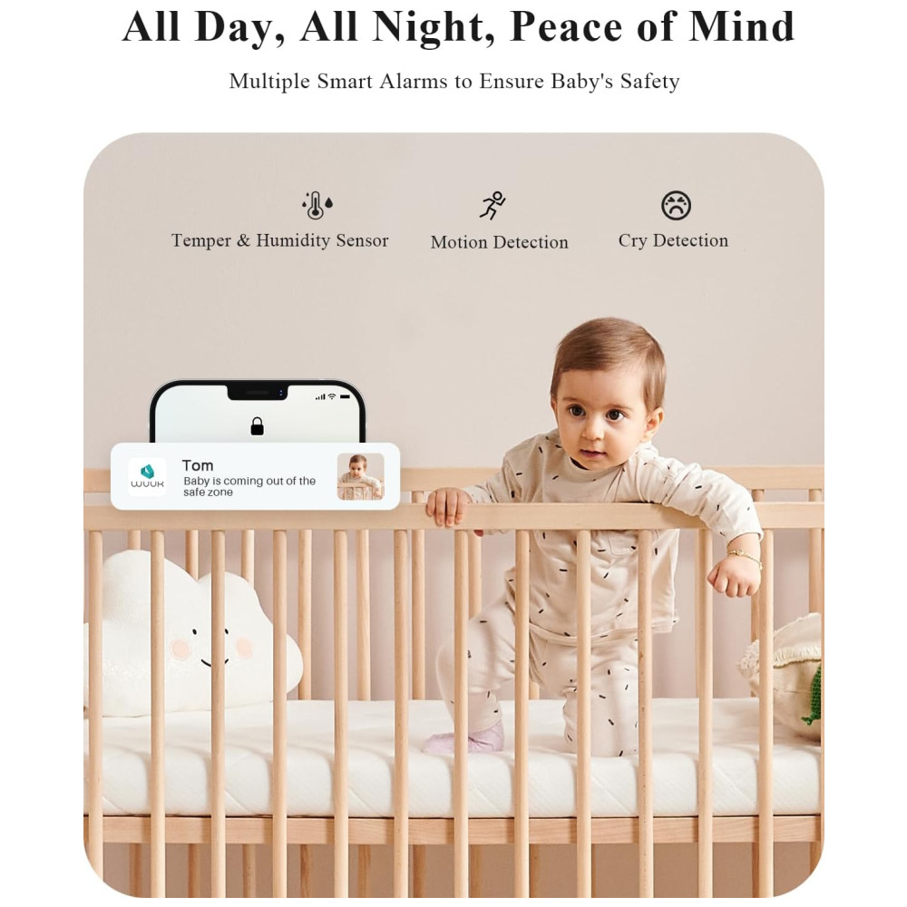 Monitore o seu bebê de forma simultânea por meio da tela de 5,5 polegadas e do aplicativo WUUK no telefone com o Sweety. Com tecnologia de conexão de longo alcance de até 303 metros, você pode cuidar do seu bebê sem limites de espaço. O monitor de bebê WUUK wifi é equipado com uma lente ultra mais ampla de 135 graus, proporcionando a imagem mais expansiva no aplicativo monitorphone em comparação com outras câmeras de ângulo de 100 graus. A tela de 5,5 polegadas e o vídeo HD 720P permitem que você veja até a respiração do bebê claramente. A função de áudio OneTouch Call permite que você entre em contato rapidamente quando precisar de ajuda com um clique fácil no botão do telefone no monitor de bebê WUUK com câmera e suporte de áudio, conversa clara instantânea via aplicativo monitorphone para a câmera, voz suave acalma o bebê imediatamente se necessário.