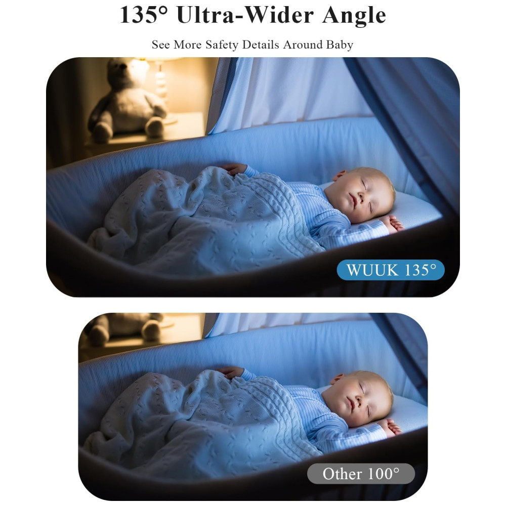 O monitor de câmera para bebês WUUK vem com uma tela ativada por som e detecção de som, para que você possa verificar a condição atual do bebê em detalhes, cuidando do seu bebê a tempo, design perfeito para o monitor do bebê dia ou noite. O monitor de bebê sem fio WUUK pode girar 360 graus horizontalmente e inclinar 110 graus verticalmente para obter uma visão clara de todo o ambiente. A lente da câmera pode ser coberta completamente se você precisar de estrutura amigável, suporte ao cliente oportuno, escolha ideal para novos pais.