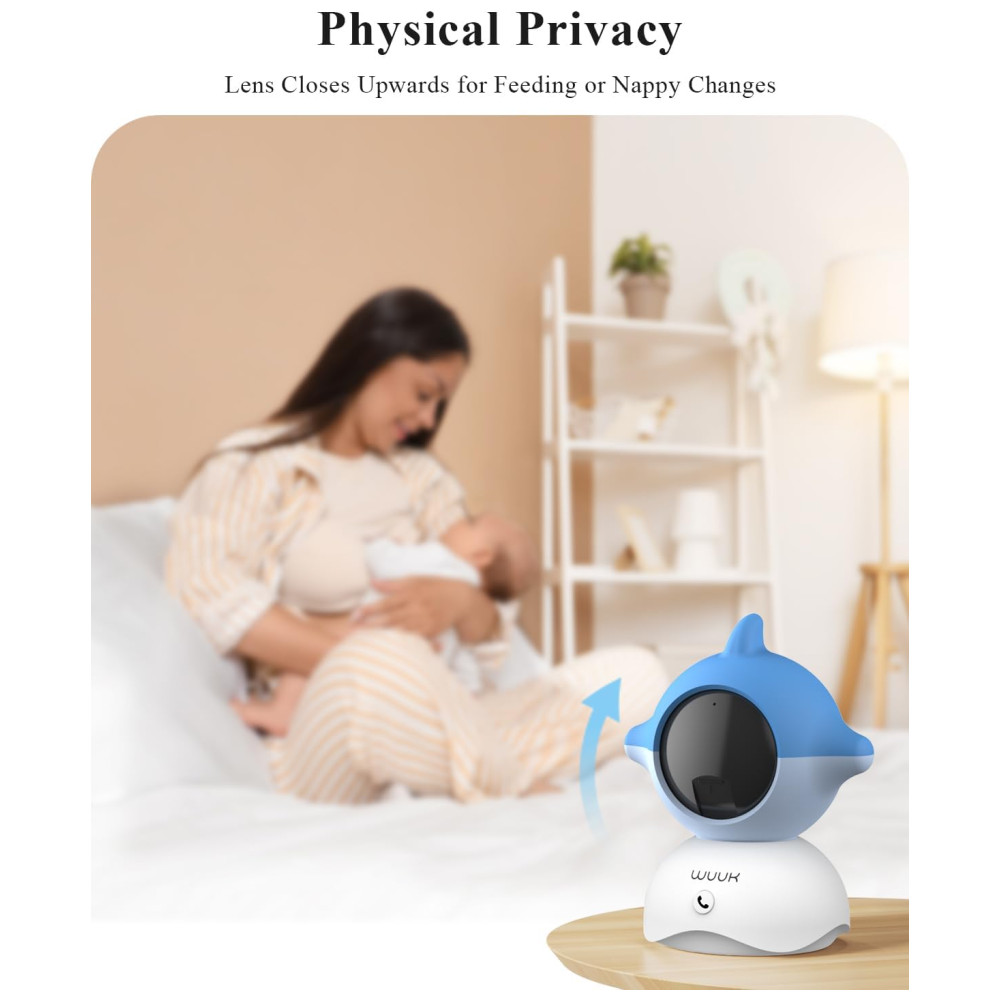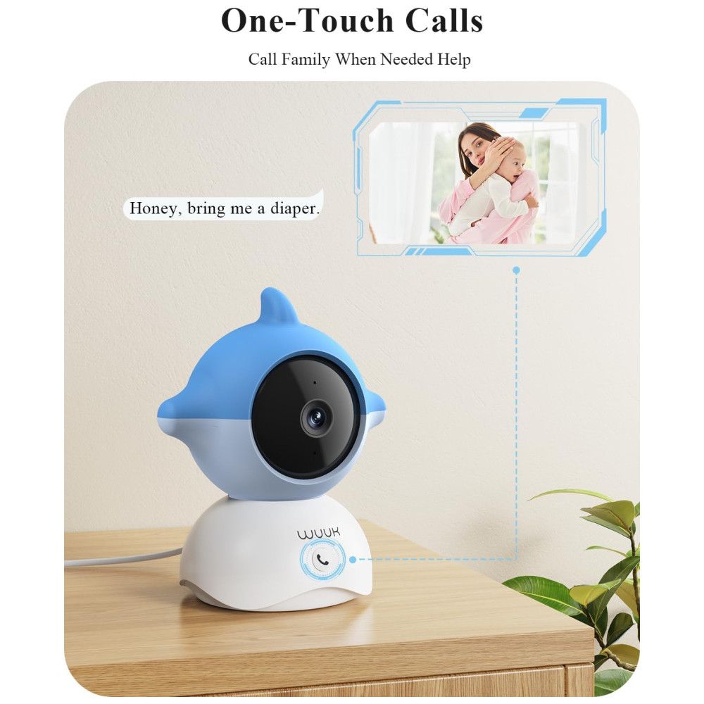 Babá Eletrônica com Câmera 2K Monitor de Tela Colorida 360 Graus de Visão Ruído Branco e Canções WUUK Branca e Azul