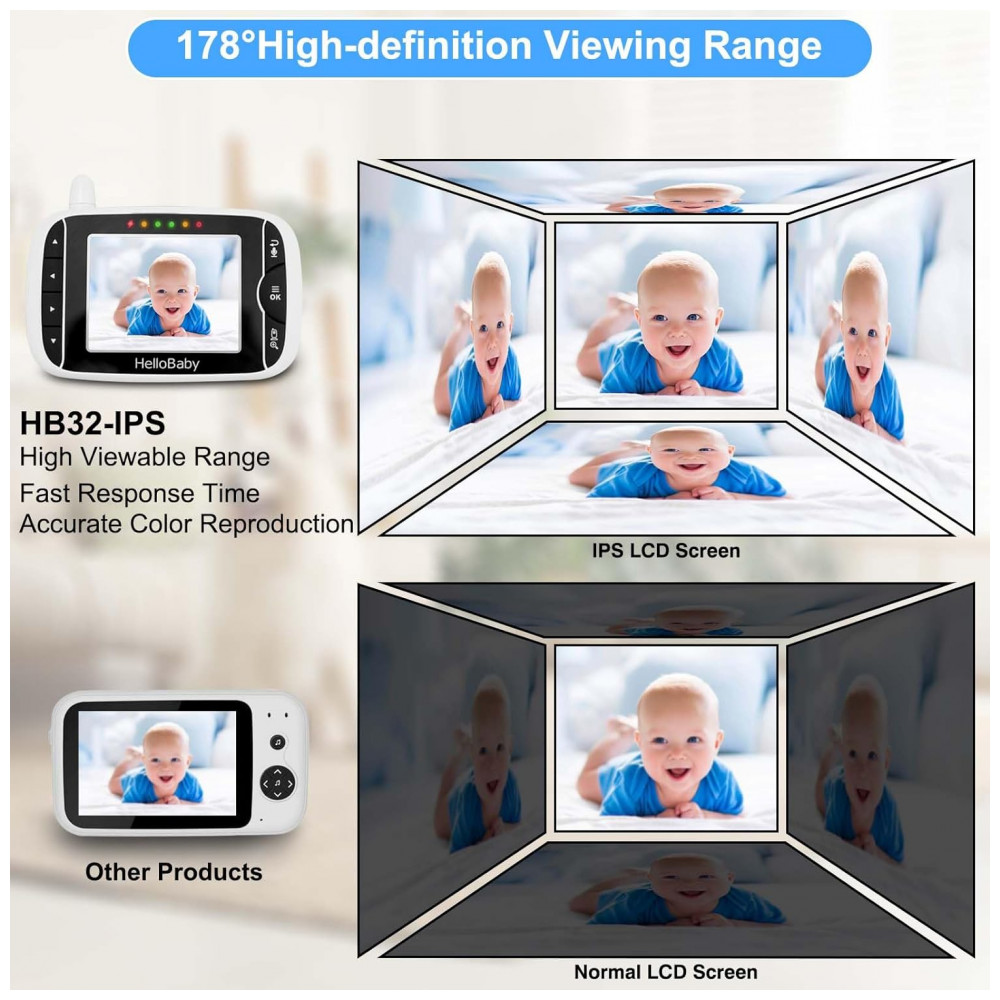 Tela IPS colorida de alta qualidade este monitor de bebê exclusivo apresenta uma tela IPS ultranítida de 7 centímetros com uma faixa de visualização de alta definição de até 178, proporcionando uma visão clara da mídia de transmissão ao vivo.
