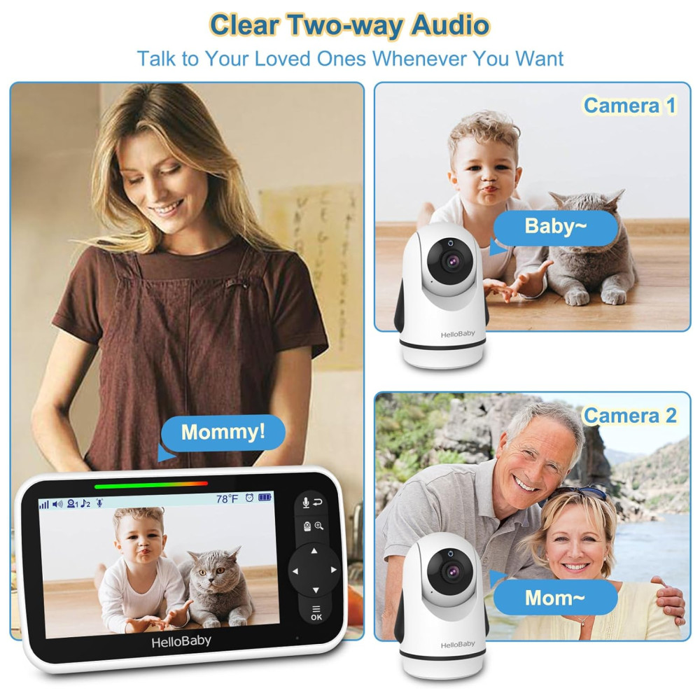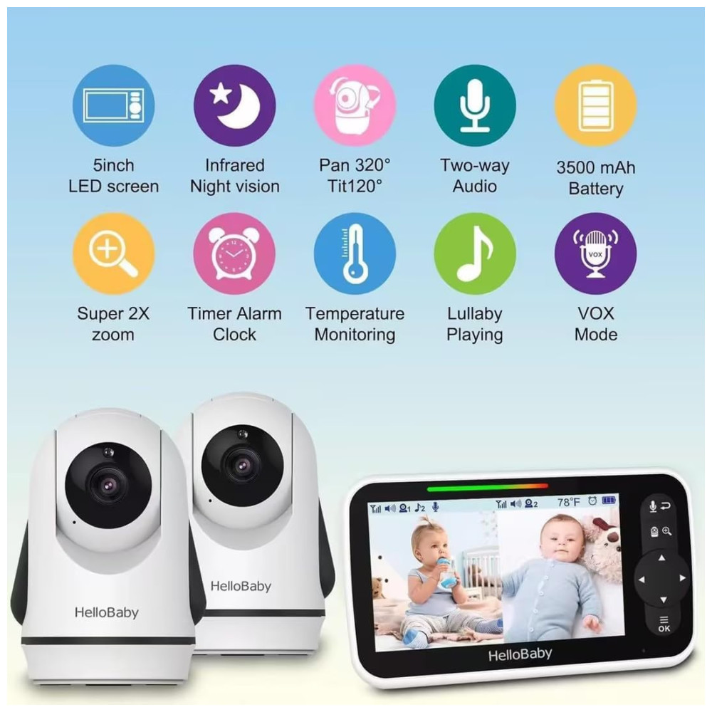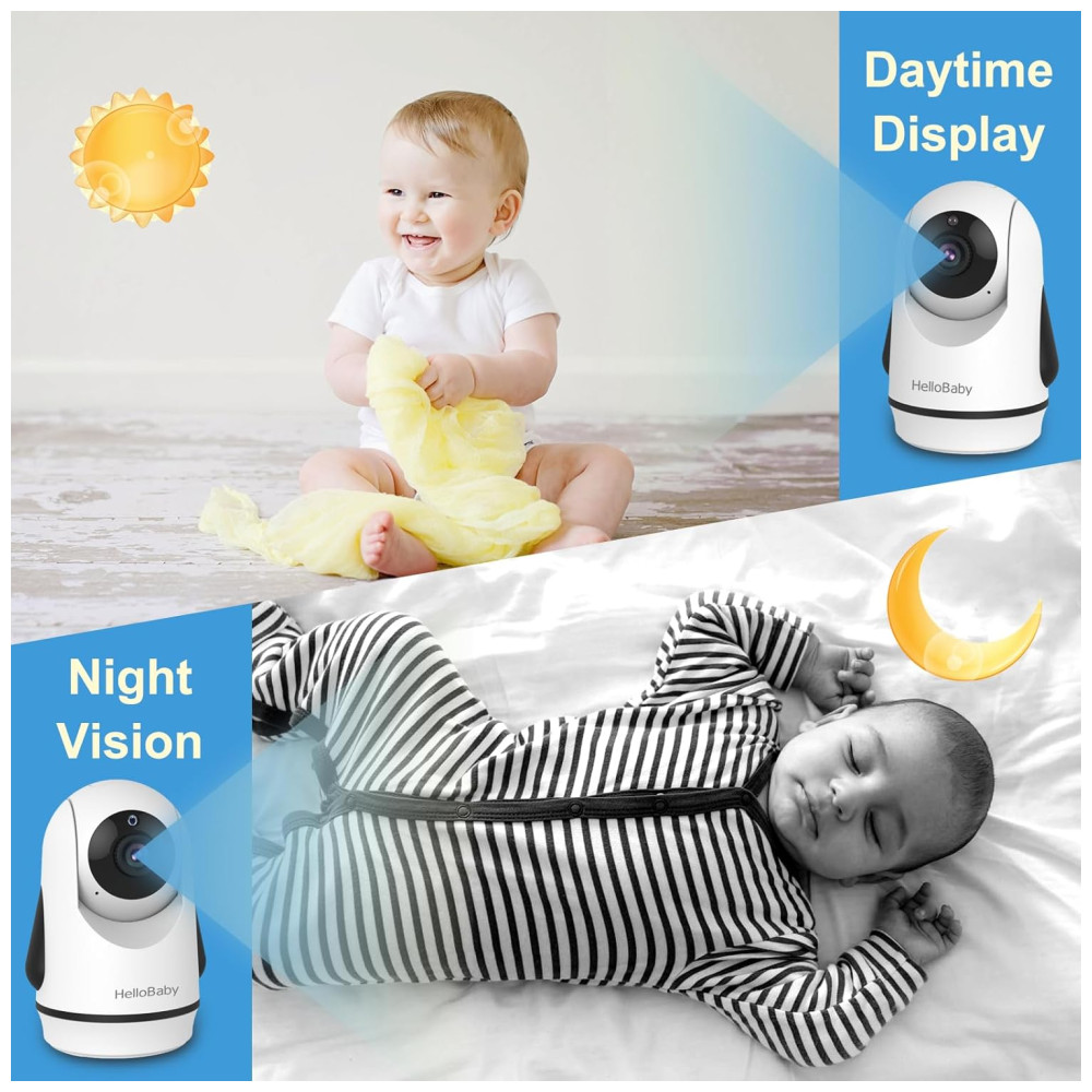 Babá Eletrônica com Câmera Áudio Zoom Panorâmico Visão Noturna 8 Canções de Ninar HelloBaby Branca