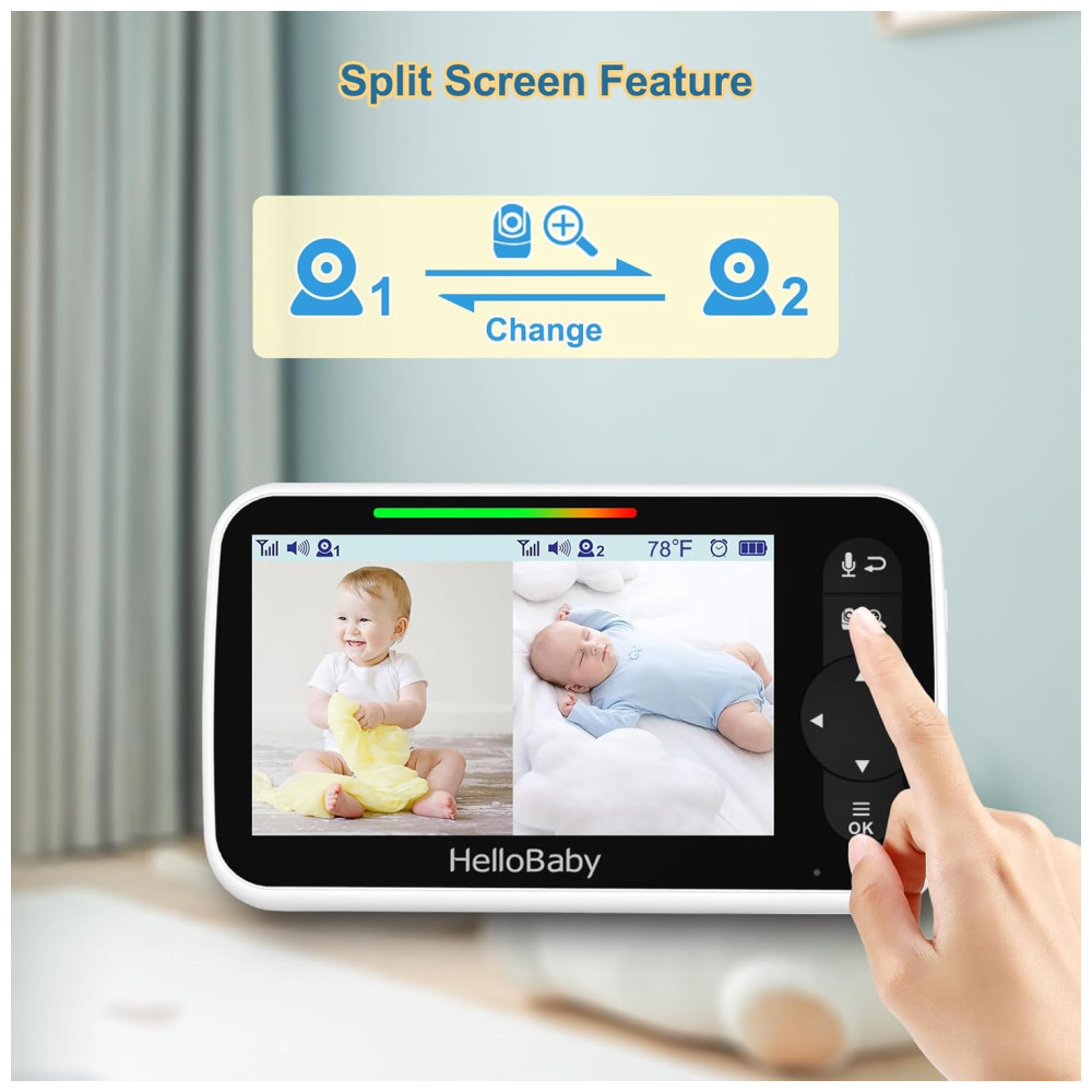 TECNOLOGIA SEM FIO DE 12 centímetros e LCD de 2,4 GHz Este monitor de vídeo para bebês é equipado com um monitor LCD TFT de 5 polegadas. A aplicação da tecnologia de salto de frequência e criptografia digital garante uma conexão segura e confiável.