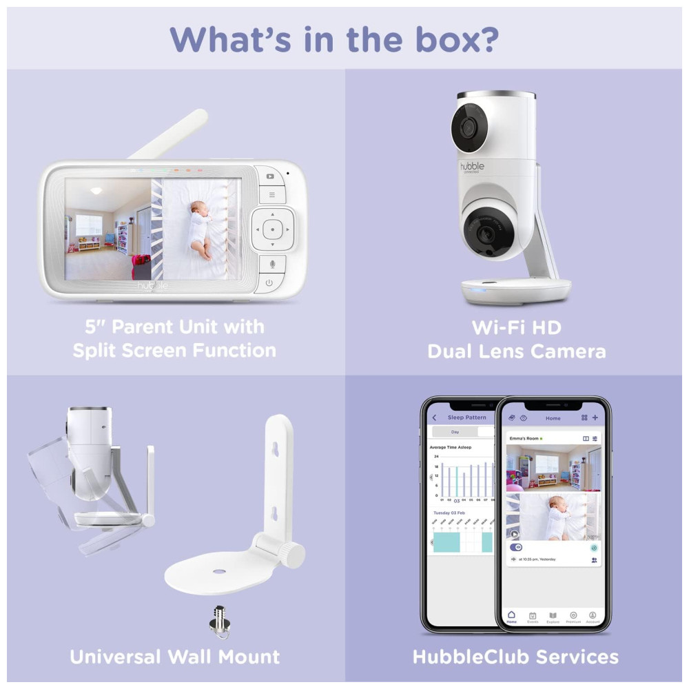 APROVEITE MAIS RECURSOS: O vídeo inteligente Baby Monitor vem equipado com vários recursos, como visão noturna infravermelha, sensor de temperatura ambiente, canções de ninar pré carregadas e sons da natureza. O Rastreador de crescimento e o aplicativo HubbleClub também estão incluídos, tornando o um monitor de vídeo para bebês versátil e abrangente, usando tecnologia inovadora e exclusiva para manter você e o bebê próximos o tempo todo.