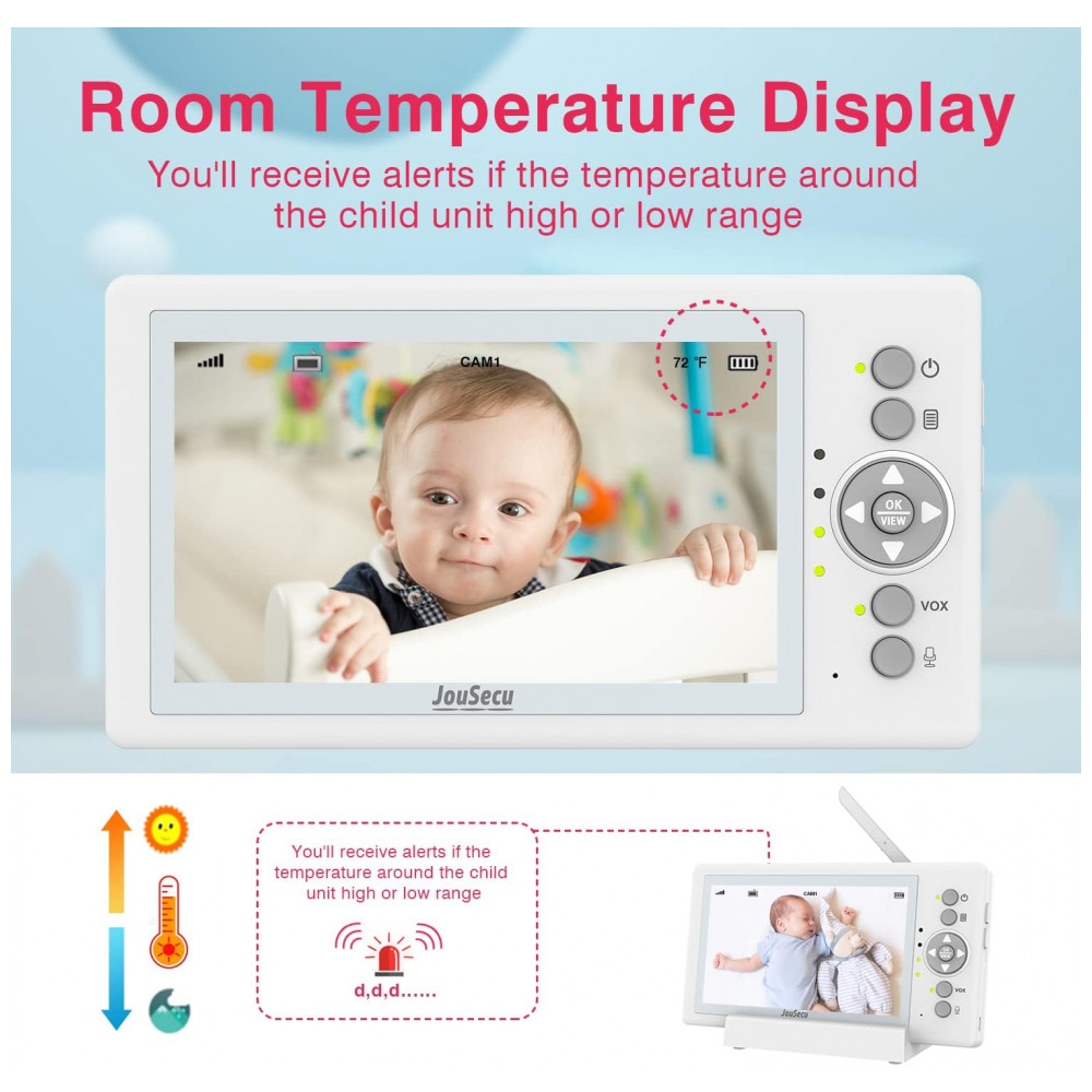 Privacidade garantida O Monitor JouSecu Baby vem com a mais recente técnica 2.4Ghz FHSS, que permite ao monitor transmitir imagens sem a necessidade de Wi Fi ou Internet, impedindo que hackers vejam os bebês e a situação em casa.