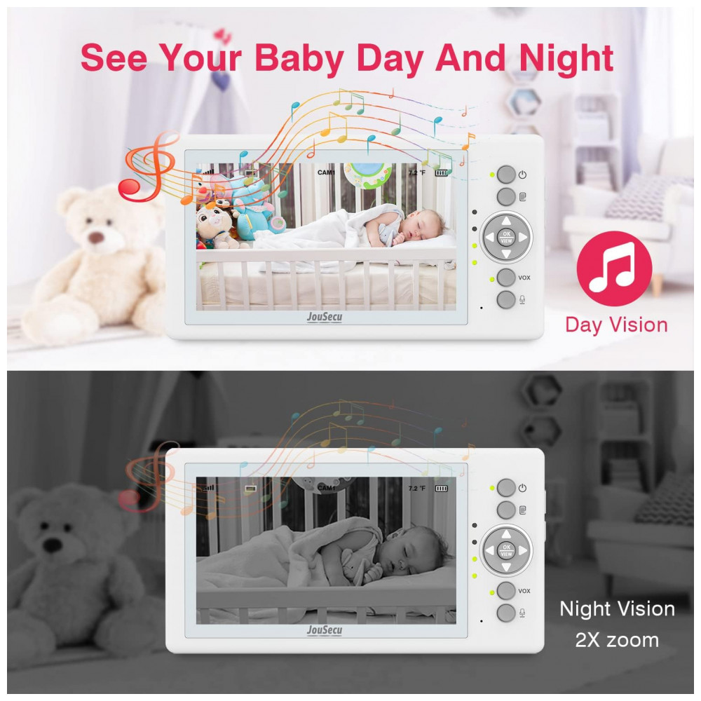 Babá Eletrônica com Câmera e Áudio Bateria de 20H e Alcance de 92M 110V JouSecu Branco