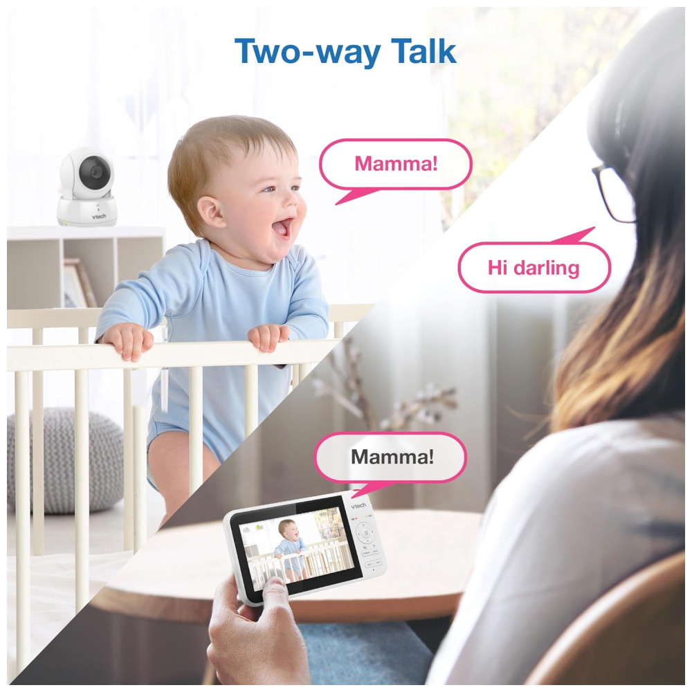 Monitore seu bebê com facilidade e tranquilidade usando o VTech Video Baby Monitor VM924. Com uma tela LCD de 5 polegadas, você pode visualizar seu filho de qualquer cômodo da casa. A câmera pode ser panorâmica e inclinada para obter uma visão completa do berçário, além de contar com zoom de até 1,33x. O monitor também possui visão noturna infravermelha automática para uma visualização clara mesmo no escuro.