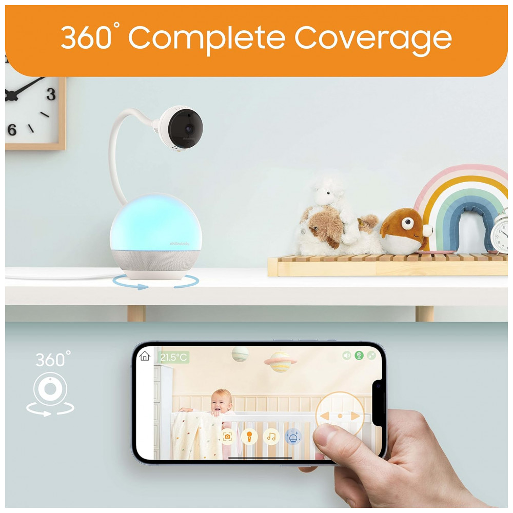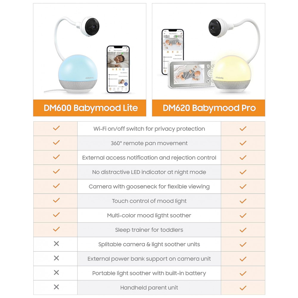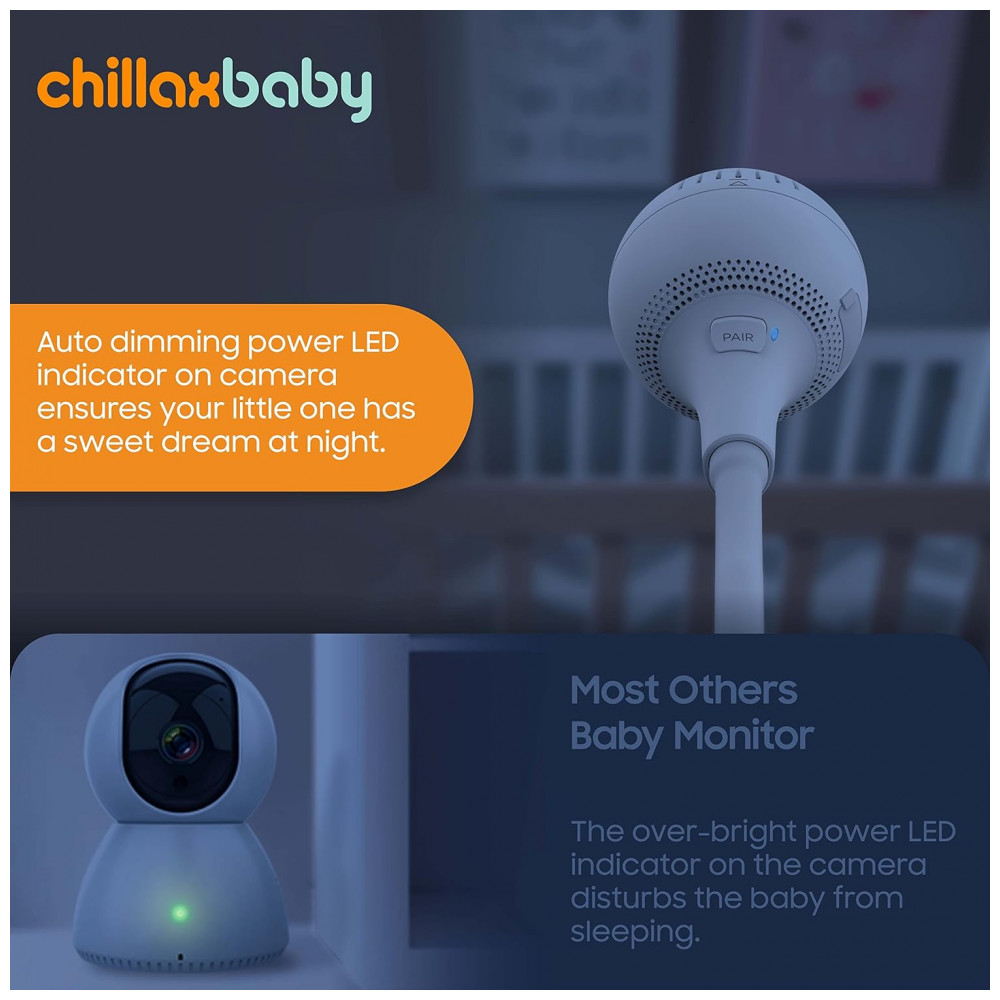 Para a paz de espírito do seu bebê Este monitor de vídeo do bebê tem uma câmera 1080p com visão noturna infravermelha, pescoço de ganso e panorâmica remota de 360, e um alto falante bidirecional que você pode usar para acalmar seu bebê. Uma boa noite de sono Com sua luz noturna de escurecimento automático e canção de ninar pré carregada, esta chupeta inteligente para bebês pode ajudar seu filho a dormir a noite toda para que você possa descansar e pegar alguns z s também. Acalma seu filho Além da canção de ninar, este treinador de sono também pode tocar sons da natureza para ajudar bebês e crianças pequenas a se acalmarem. O ruído branco também pode evitar que as crianças se assustem. Esteja no controle Verifique seu bebê onde quer que esteja com a conectividade Wi Fi deste monitor. Com o aplicativo ChillaxCare, você pode optar por aceitar ou rejeitar o compartilhamento de vídeo da sua câmera. Configuração fácil Basta colocar esta câmera para bebês em cima de uma mesa ou prateleira alta ou montá la na parede do berçário. É compatível com a unidade dos pais DM620, o aplicativo ChillaxCare, Alexa e Google Assistant