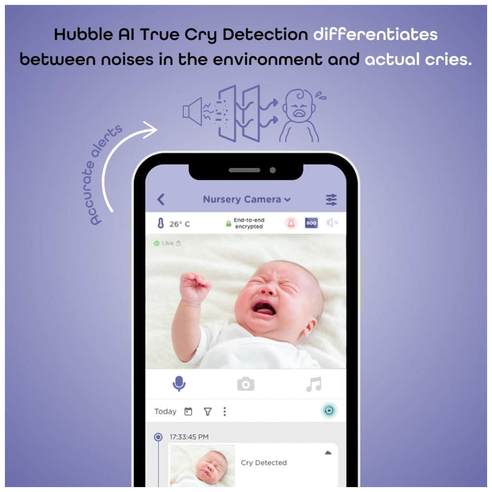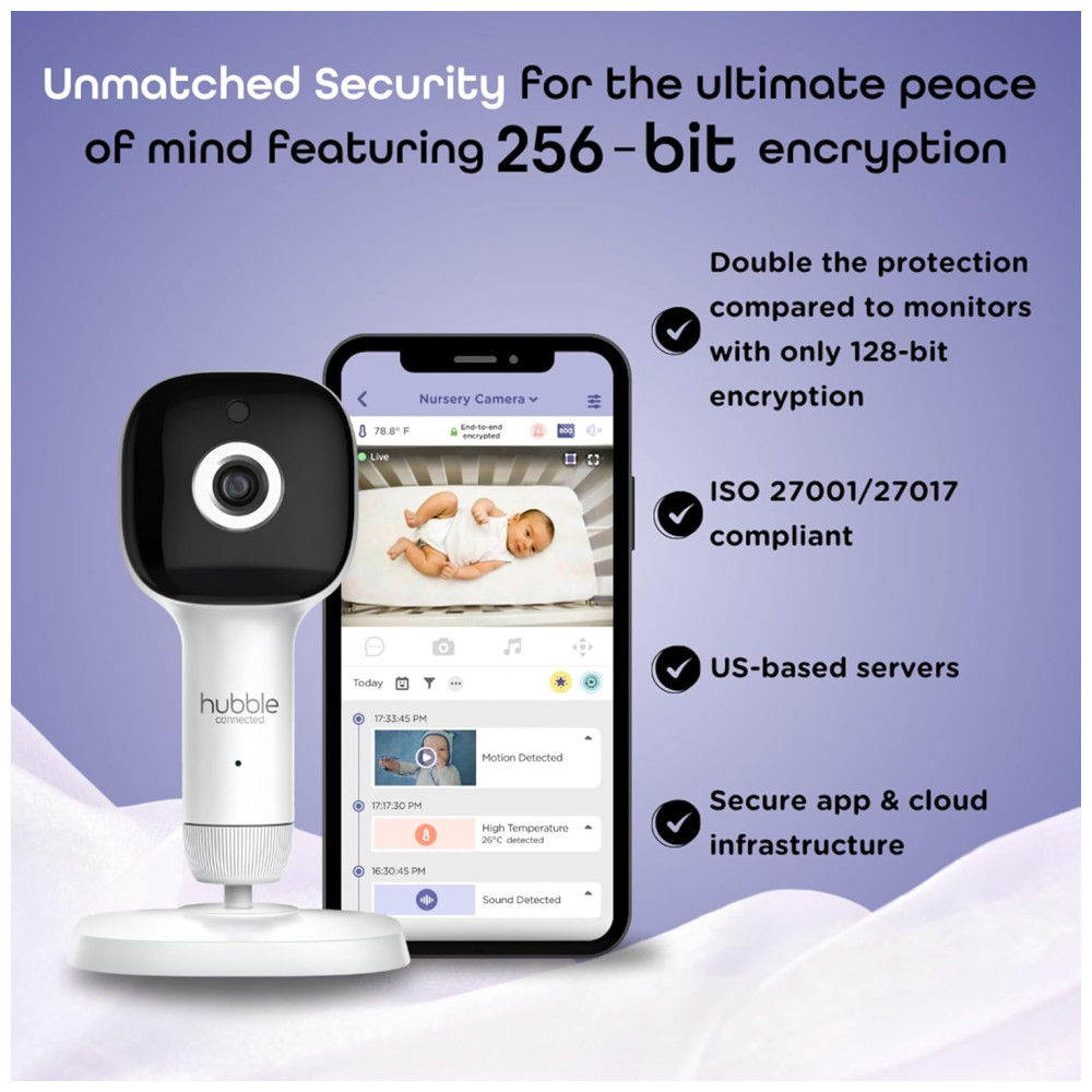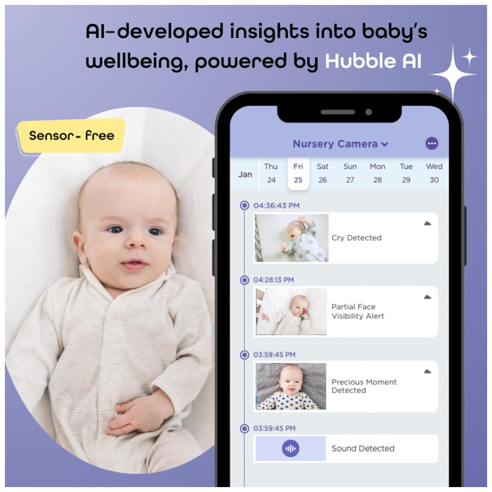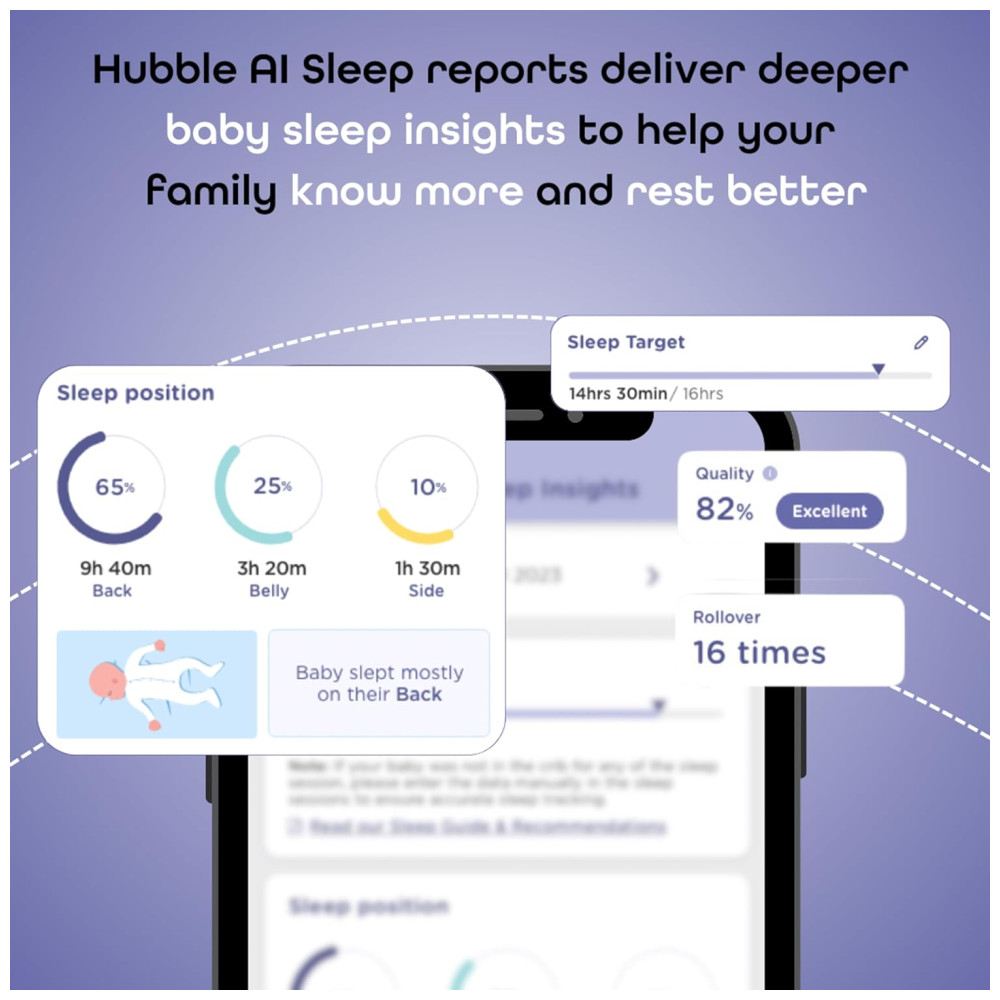 Babá Eletrônica com Câmera Inteligente HD Suporte para Berço Luz e Visão Noturna Rastreador de Bem Estar HUBBLE CONNECTE.