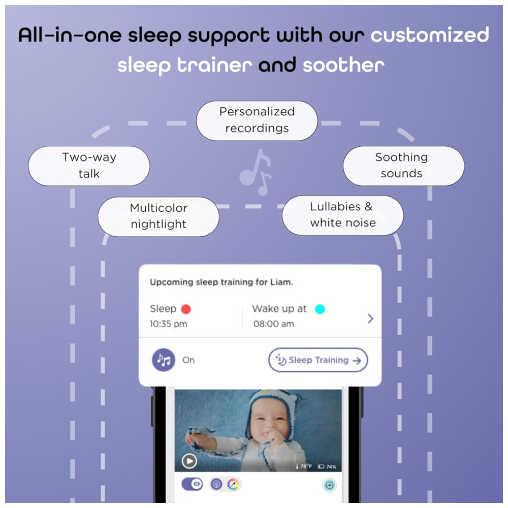 O Sleep Trainer ajuda você a criar rotinas personalizadas de sono, com sons suaves pré-carregados e uma luz noturna de 7 cores para promover hábitos saudáveis de sono para toda a família.