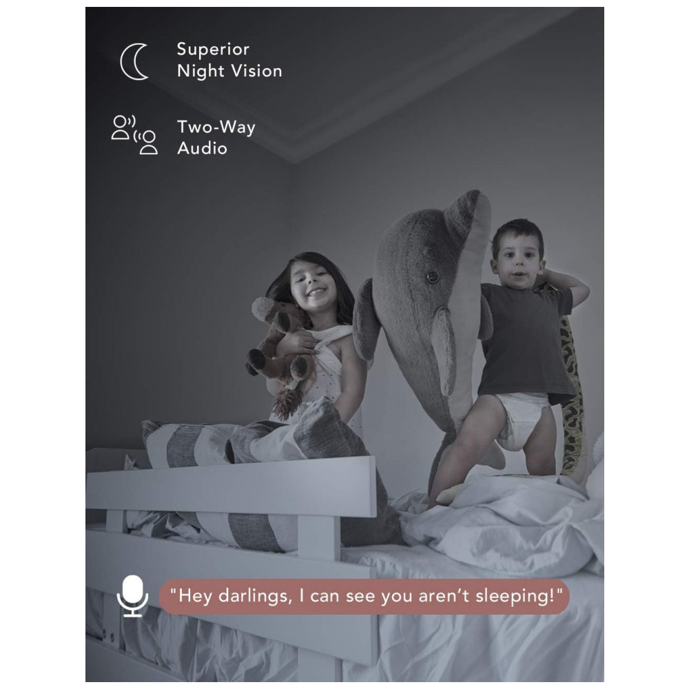 DETECÇÃO DE MOVIMENTO SOM, ÁUDIO DE DUAS VIAS Transmissão ao vivo 24 horas por dia, 7 dias por semana, com alertas sonoros e de movimento em tempo real. Ouça e converse com a família ou animais de estimação com microfone e alto falante antirruído integrados.
