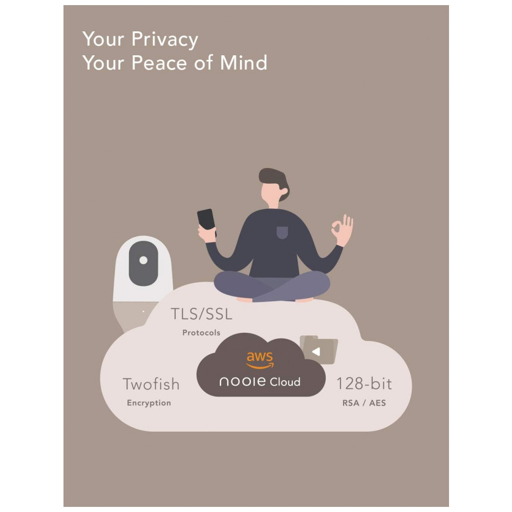 DADOS S E ZENAMENTO DE DADOS Opções de gravação contínua ou por detecção de movimento. Vários protocolos de segurança para manter seus dados e privacidade s. Opções de gravação contínua ou com detecção de movimento. Cartão Micro SD compre separadamente ou serviço de assinatura em nuvem inscreva se via Nooie App