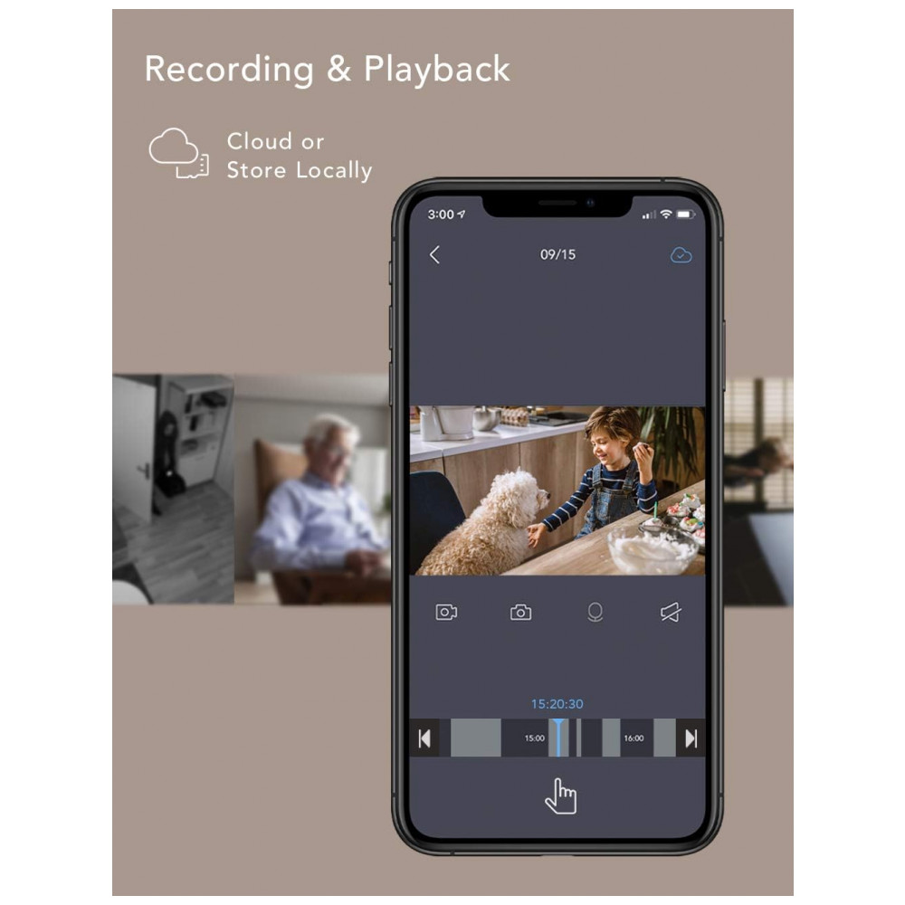 ESTILO, INTUITIVO, FÁCIL CONFIGURAÇÃO A câmera e o aplicativo são fáceis de instalar, simples de controlar e fáceis de manter. Compatível com rede Wi Fi de 2,4 GHz. Baixe o aplicativo na App Store ou no Google Play. Funciona com Alexa.