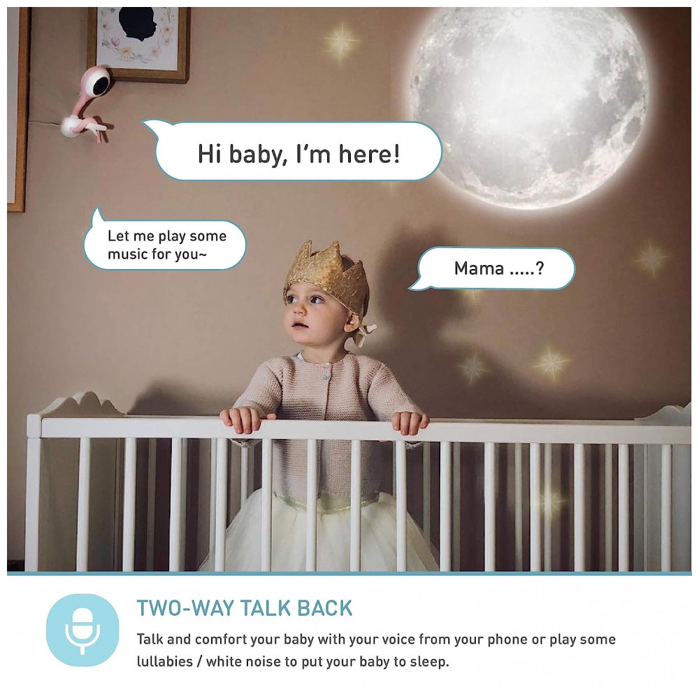 Detecção de choro O pirulito pode dizer a diferença entre ruídos ambientais como o vento e quando seu filho precisa de atenção. Se o bebê chorar quando você estiver fora do quarto, você receberá um alerta no celular.