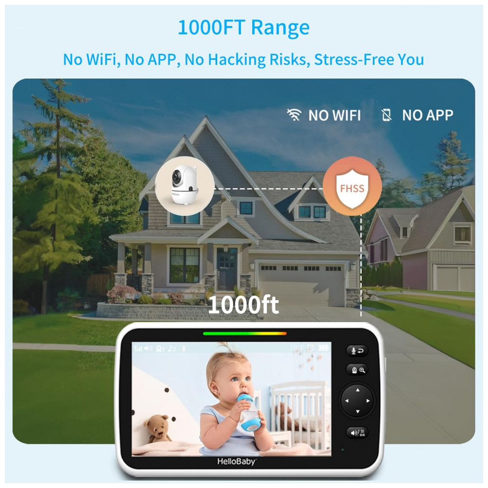 Seja de dia ou de noite, o Monitor de Vídeo HelloBaby proporciona uma visão nítida de todos os detalhes com sua tela IPS de 15 cm, reduzindo a fadiga ocular. Com bateria de incríveis 1630 horas, permite monitorar seu bebê ou ente querido idoso sem luzes fortes, garantindo conforto visual. Com visão noturna infravermelha, áudio bidirecional, controle remoto para rotação de 355 graus, ampla cobertura angular, monitoramento de temperatura do ambiente e alertas, este é o presente ideal para pais de primeira viagem e idosos. Este monitor de bebê sem WiFi oferece conexão estável com tecnologia de criptografia digital, garantindo segurança máxima. Com recursos como detecção de choro, longa duração de bateria, montagem na parede ou mesa, e tela dividida para até 2 câmeras, o HelloBaby proporciona uma experiência de monitoramento completa e segura. Aproveite a praticidade e tranquilidade que o Monitor de Vídeo HelloBaby oferece, seja em casa ou em viagens!