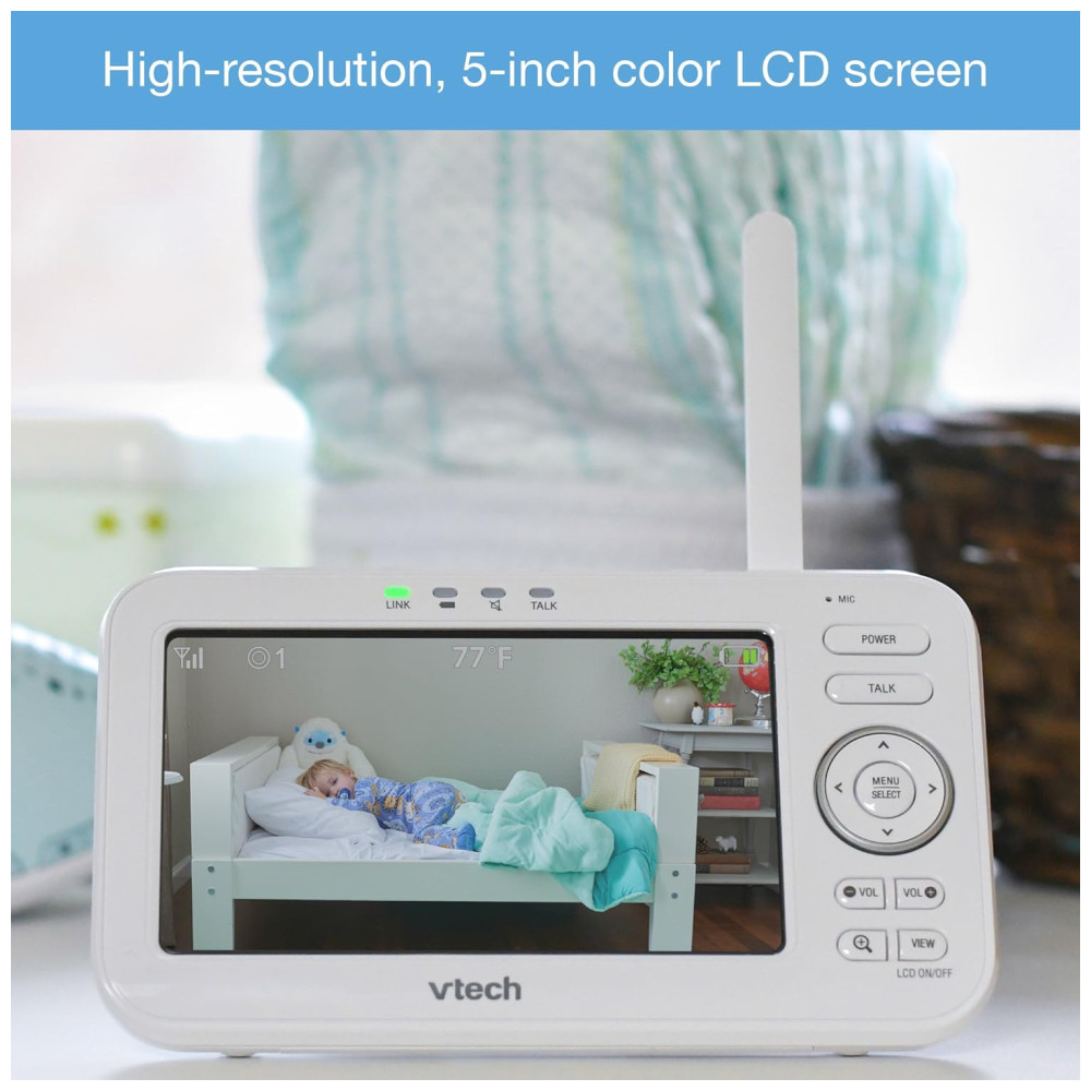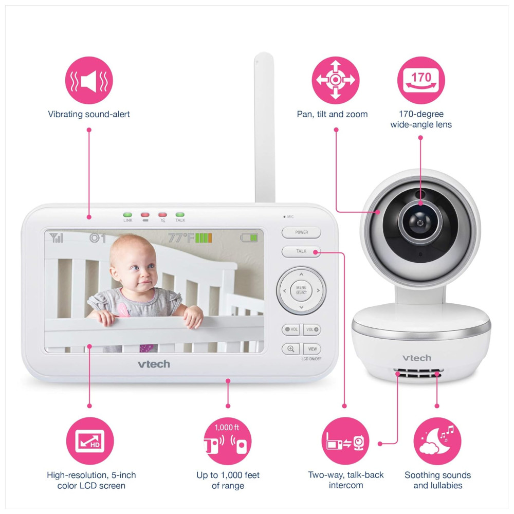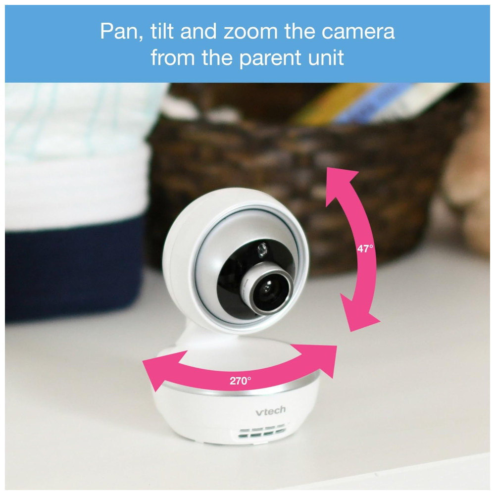 O VTech VM5261 é uma Babá Eletrônica com um monitor, de alta qualidade, projetado para oferecer tranquilidade e segurança aos pais. Com uma tela LCD colorida, você pode ver cada movimento do seu bebê com clareza. A câmera Pan & Tilt permite ajustar a visão remotamente, garantindo que você tenha uma visão completa do ambiente do bebê.