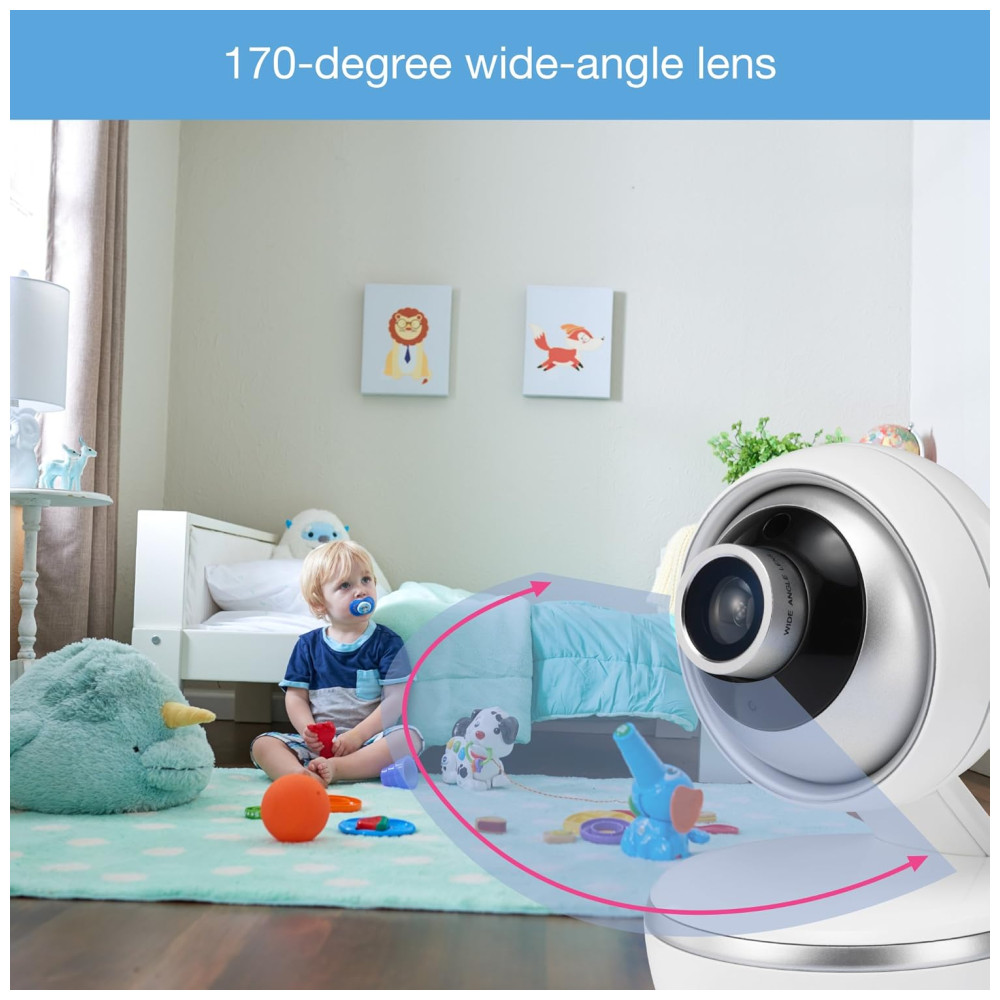 Câmera Pan & Tilt: Ajuste a câmera remotamente para uma visão completa do quarto do bebê.