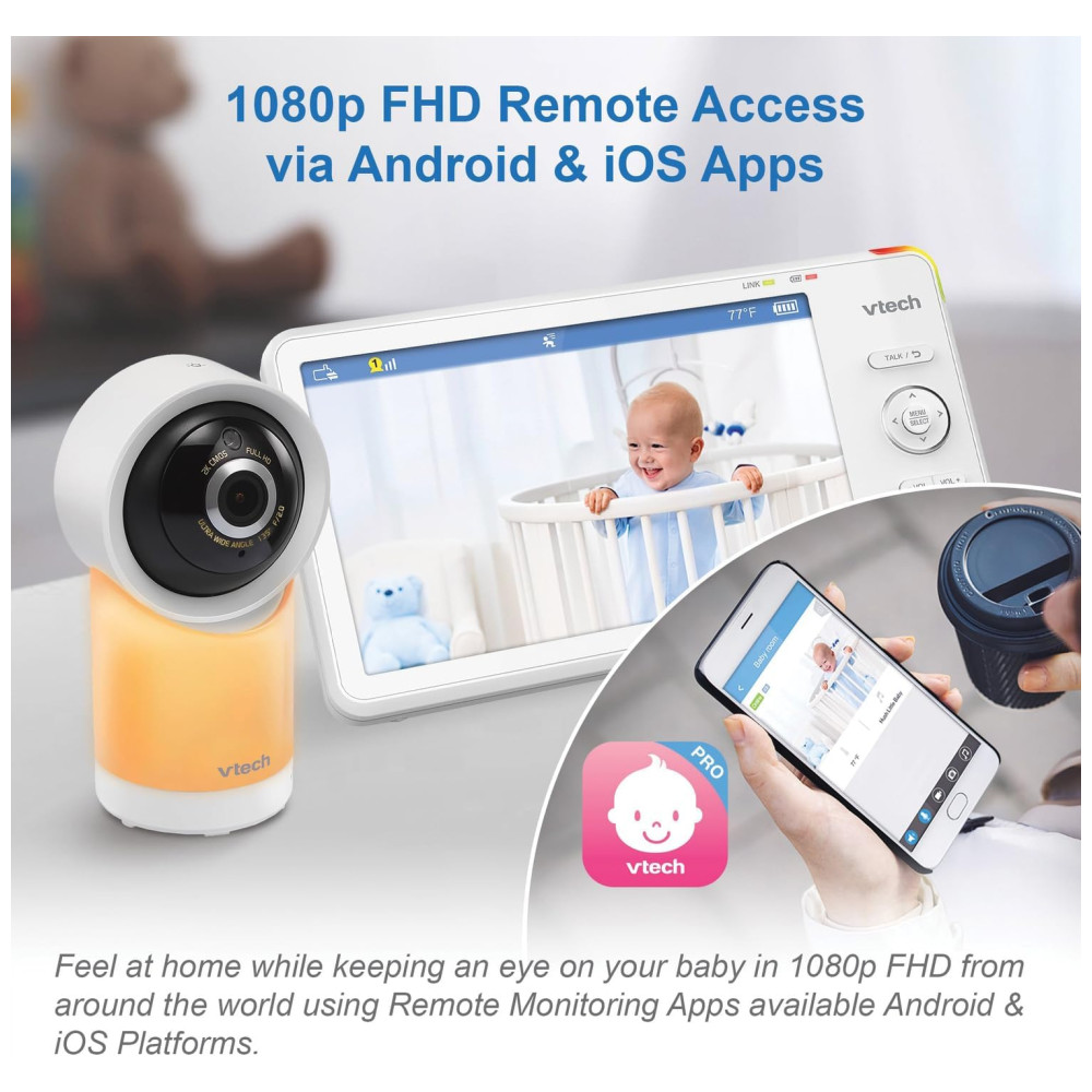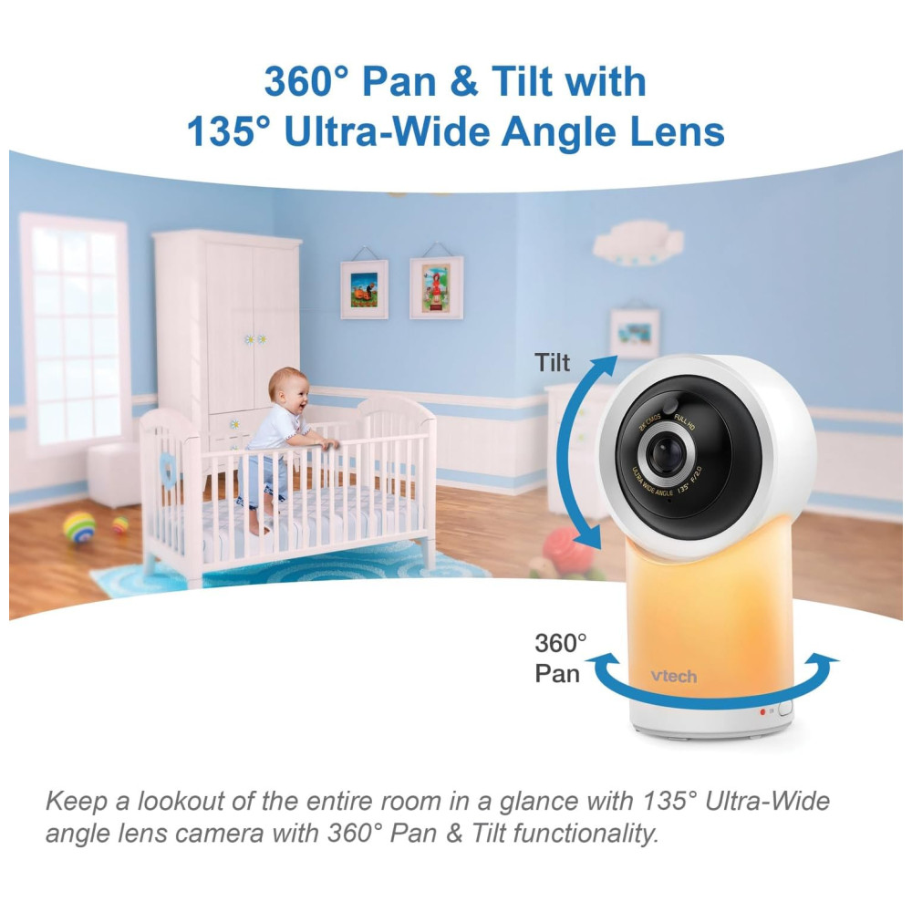 Babá Eletrônica com Monitor com Wi-Fi 2 Câmeras 1080p Visão 360°Luz Noturna e Acesso RemotoVTECH RM7766-2HDBranco