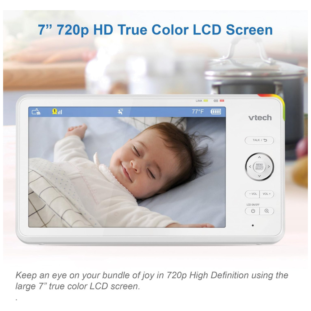 Tela LCD colorida em HD: Visualize cada movimento do seu bebê em alta definição com a tela de 720p, oferecendo uma experiência clara e detalhada.