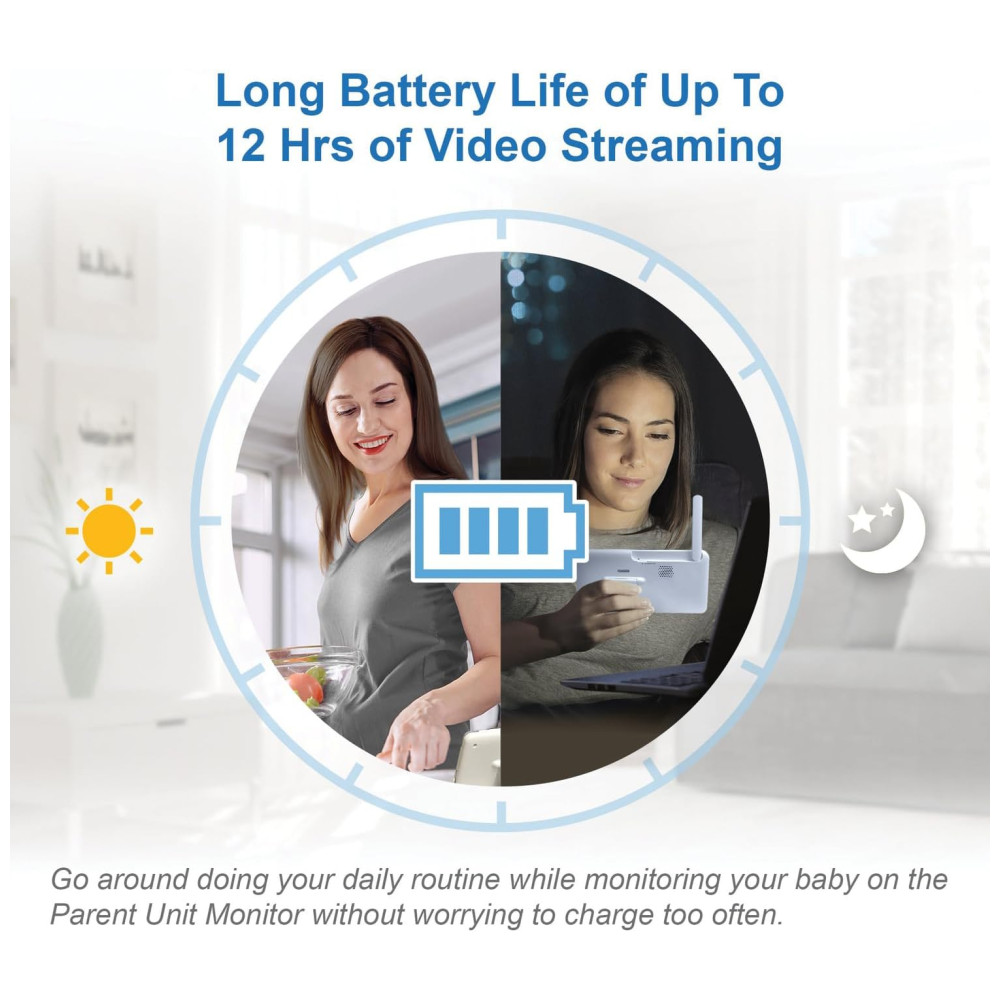 Apresentando a Babá Eletrônica com monitor com qualidade de vídeo 1080p Full HD, que permite visualizar seu pequeno com clareza na unidade dos pais em 720p, além de ser compatível com smartphones e tablets.