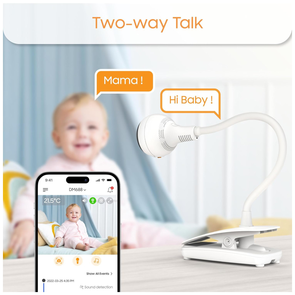Compatível com smartphones e com controle por Amazon Alexa, o monitor é fácil de instalar e configurar. Sua conectividade Wi-Fi sem fio oferece liberdade para monitorar seu bebê a distância, sem a necessidade de fios complicados.