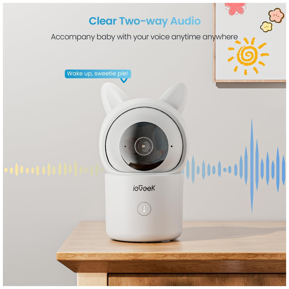 Babá Eletrônica com Sensor de Temperatura Câmera Áudio Monitor 1080P FHD Sem WiFi ieGeek Branco