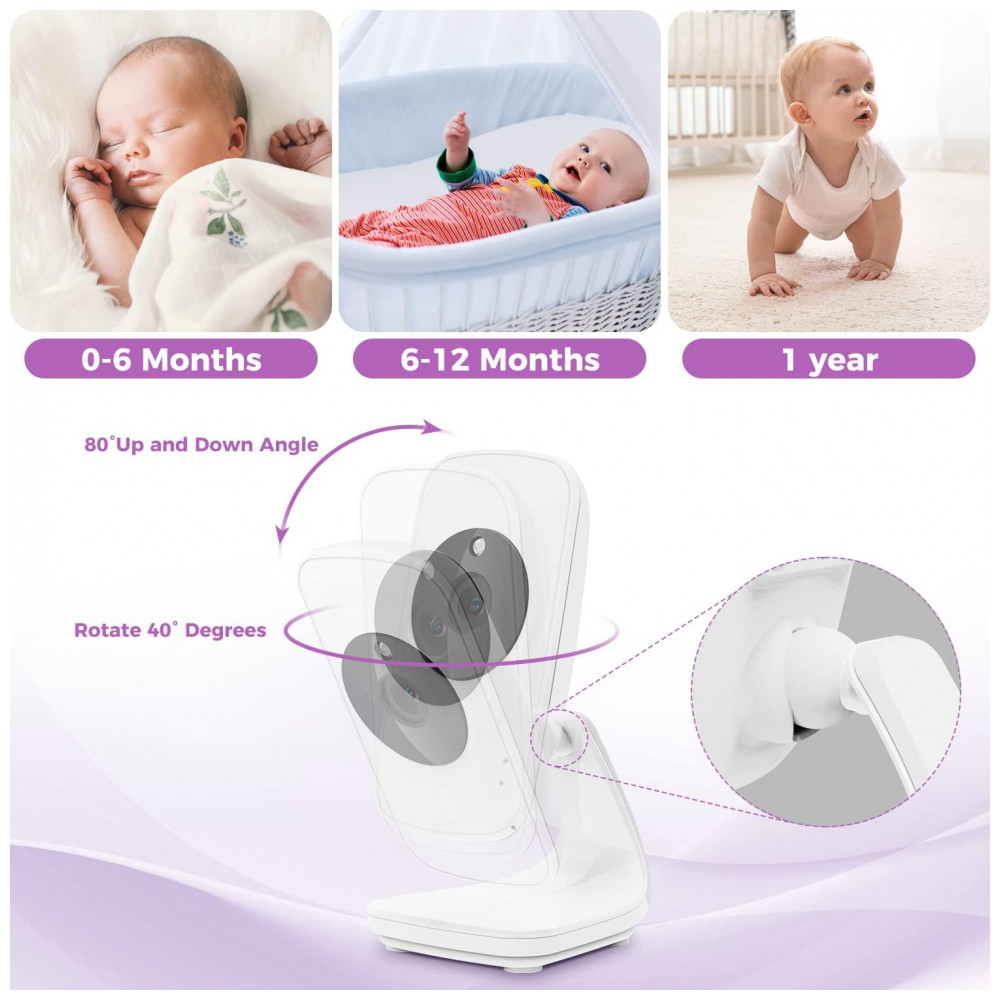 O Monitor de Bebê da VTimes possui uma tela LCD colorida de 12 cm com tecnologia sem fio, proporcionando uma visualização nítida e abrangente. Com zoom de 2x, monitoramento de temperatura e reprodução de 8 canções de ninar. Além disso, conta com comunicação bidirecional para conversar com seu bebê, visão noturna automática, alerta de voz, entre outras funcionalidades inteligentes. O monitor dorme automaticamente para economizar energia e pode ser expandido para até 4 câmeras.
