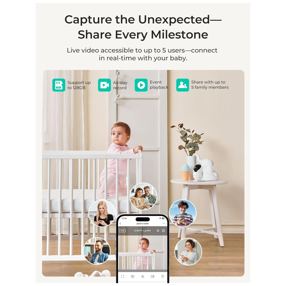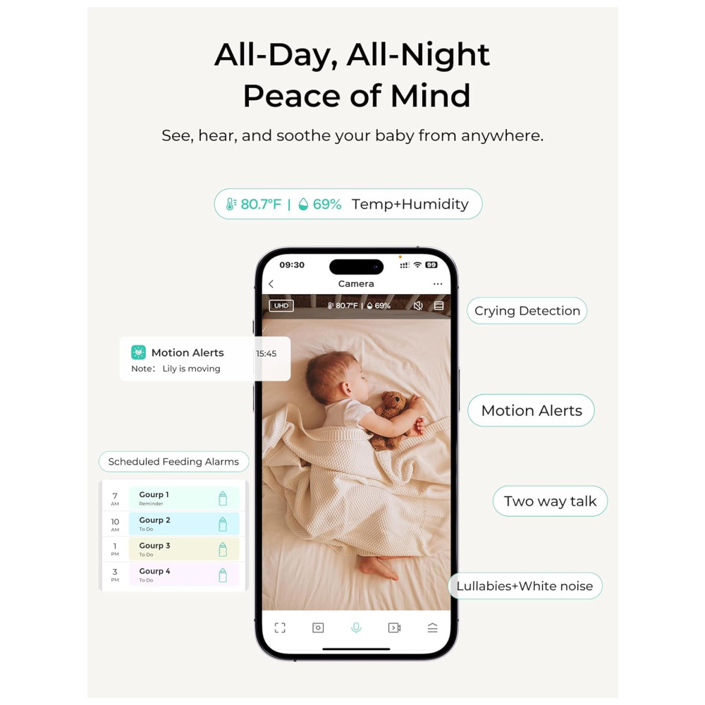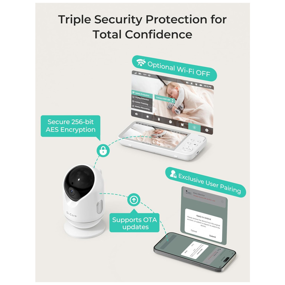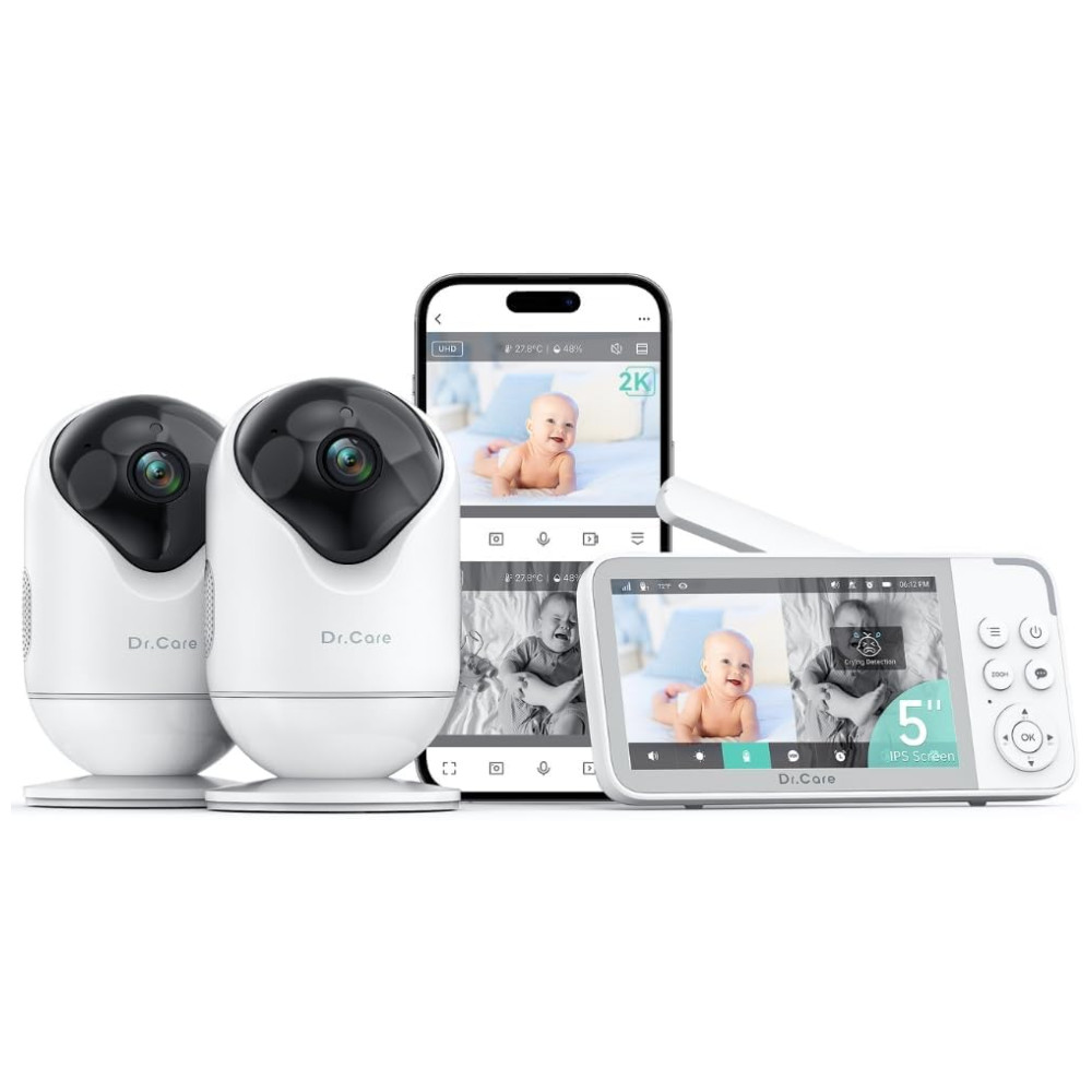 Capture todos os preciosos momentos do seu bebê com o Monitor de Bebê Inteligente VistaView da Dr.Care. Com resolução impressionante de 2K e a opção de visualização em tela dividida em 1080P, você verá todos os detalhes, desde suaves respirações até pequenos dedos e dedinhos, com clareza vívida, tanto de dia quanto de noite. Fique conectado ao seu bebê com alertas em tempo real para movimento, choro, temperatura e umidade. Receba notificações instantâneas sempre que seu bebê se mexer ou acordar, podendo acalmá-lo com canções de ninar, ruído branco ou sua voz através do sistema de conversa bidirecional. Além disso, defina lembretes de alimentação e notificações personalizadas para estar sempre em sintonia com as necessidades do seu bebê. Com rastreamento inteligente e zonas de alerta personalizáveis, você pode relaxar enquanto seu bebê se diverte na sala. As funcionalidades de pan de 300°, tilt de 65° e zoom de 2X-4X garantem que você sempre terá seu bebê à vista, mesmo quando ele se movimenta. Grave momentos especiais com suporte para cartão SD de até 128GB (não incluso) ou armazenamento na nuvem opcional. Desfrute de total segurança com múltiplas camadas de proteção, incluindo criptografia AES de 256 bits. Com uma bateria robusta de 5000mAh, tenha até 10 horas de streaming contínuo e 15 horas no modo VOX. Alcance estável de até 390 metros para mantê-lo conectado em toda sua casa. O pacote inclui 1 monitor de bebê VistaView, 2 câmeras para bebê, cabos de carregamento USB-C, adaptadores de energia e manual do usuário. Atenção: o dispositivo suporta apenas redes de 2,4G, a unidade do bebê não possui bateria e a unidade dos pais não suporta WiFi.