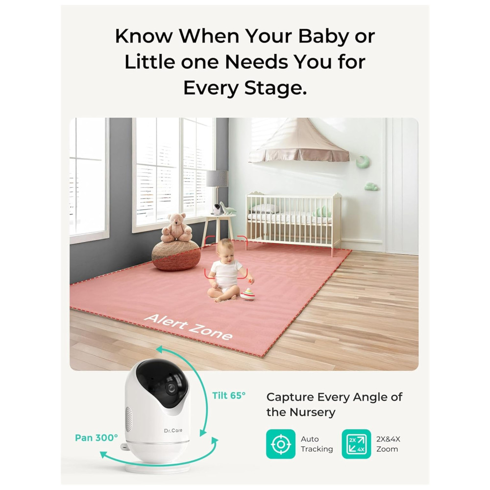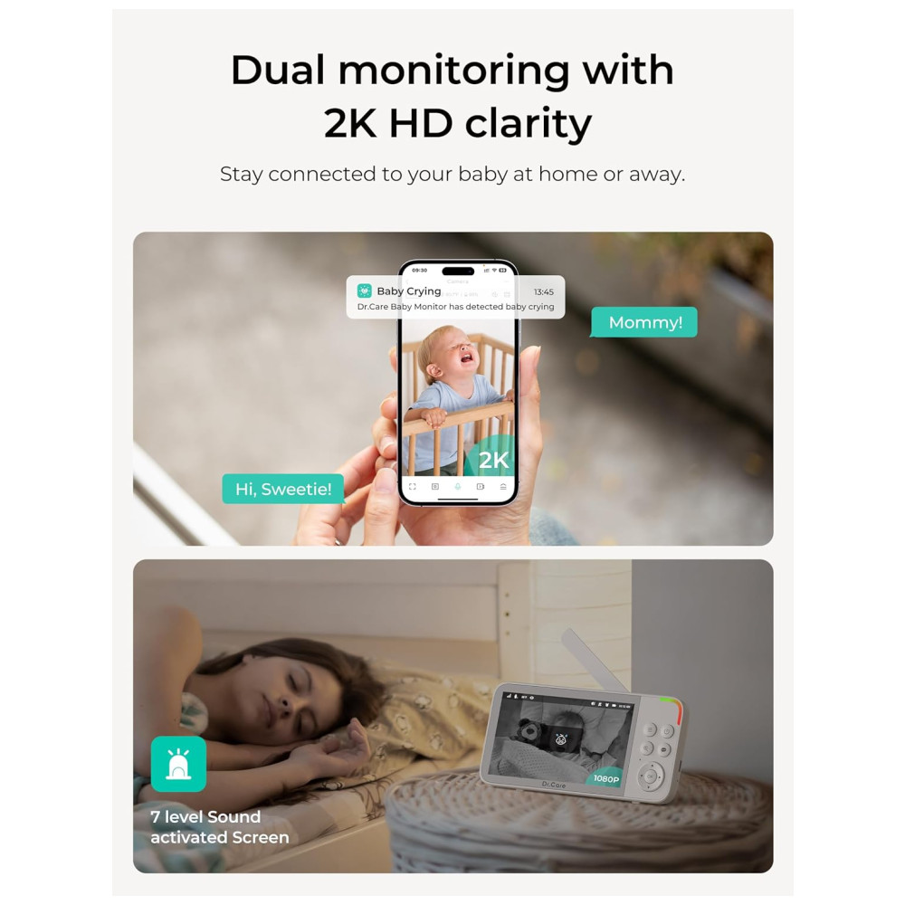 Babá Eletrônica de Bebê Inteligente VistaView com 2 Câmeras 1080P e 2K Controle Via App Alertas de Choro e Movimento Visão NoturnaDr.Care