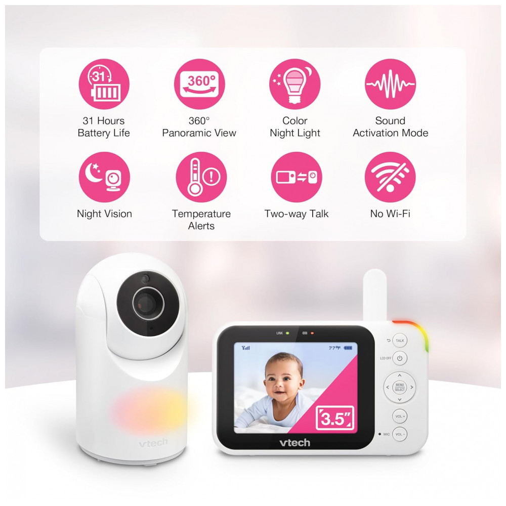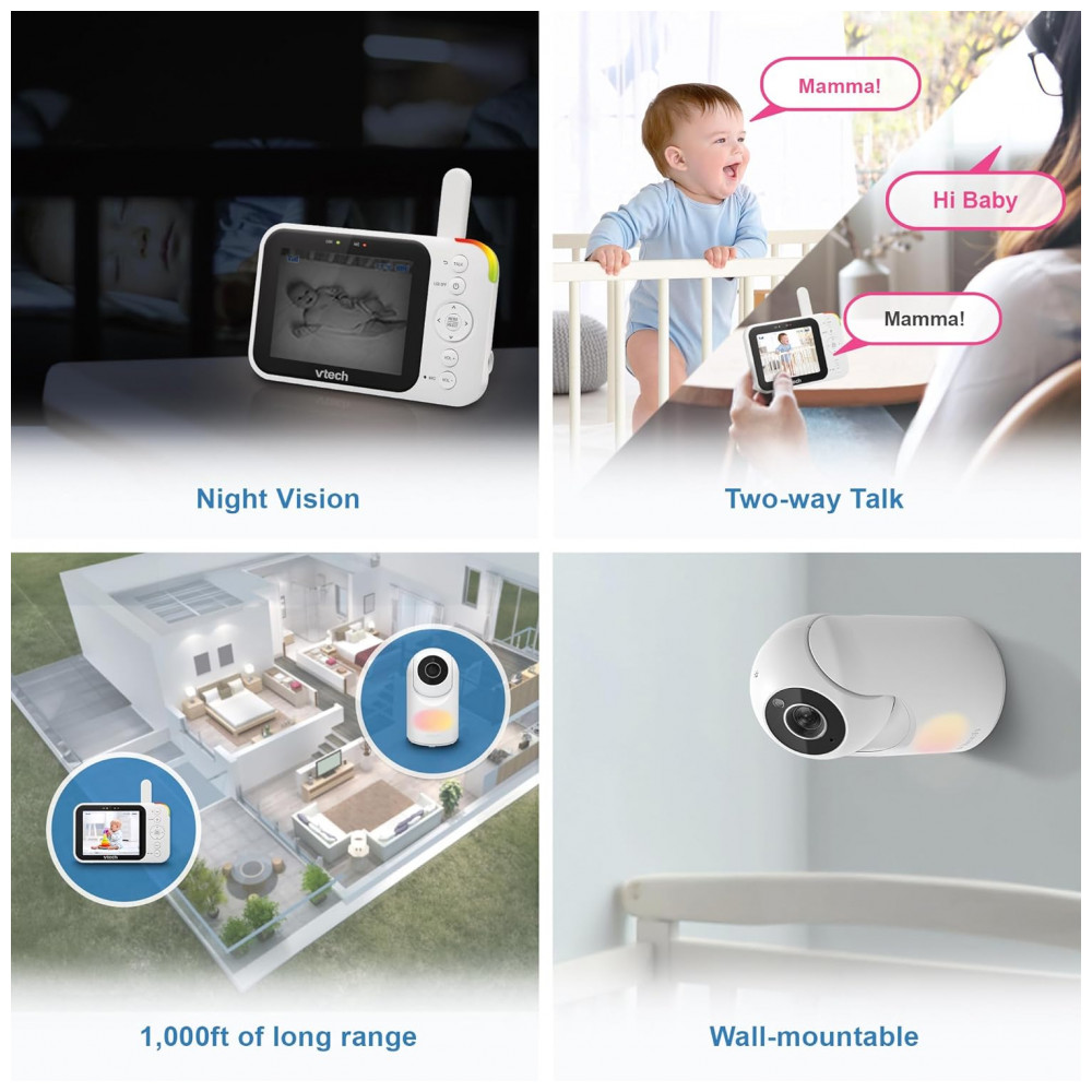 Babá Eletrônica em Vídeo VTech com Câmera e Áudio Tela LCD de 8 cm Giro/Inclinação/Zoom Conversa Bidirecional Modo VOX Luz Noturna