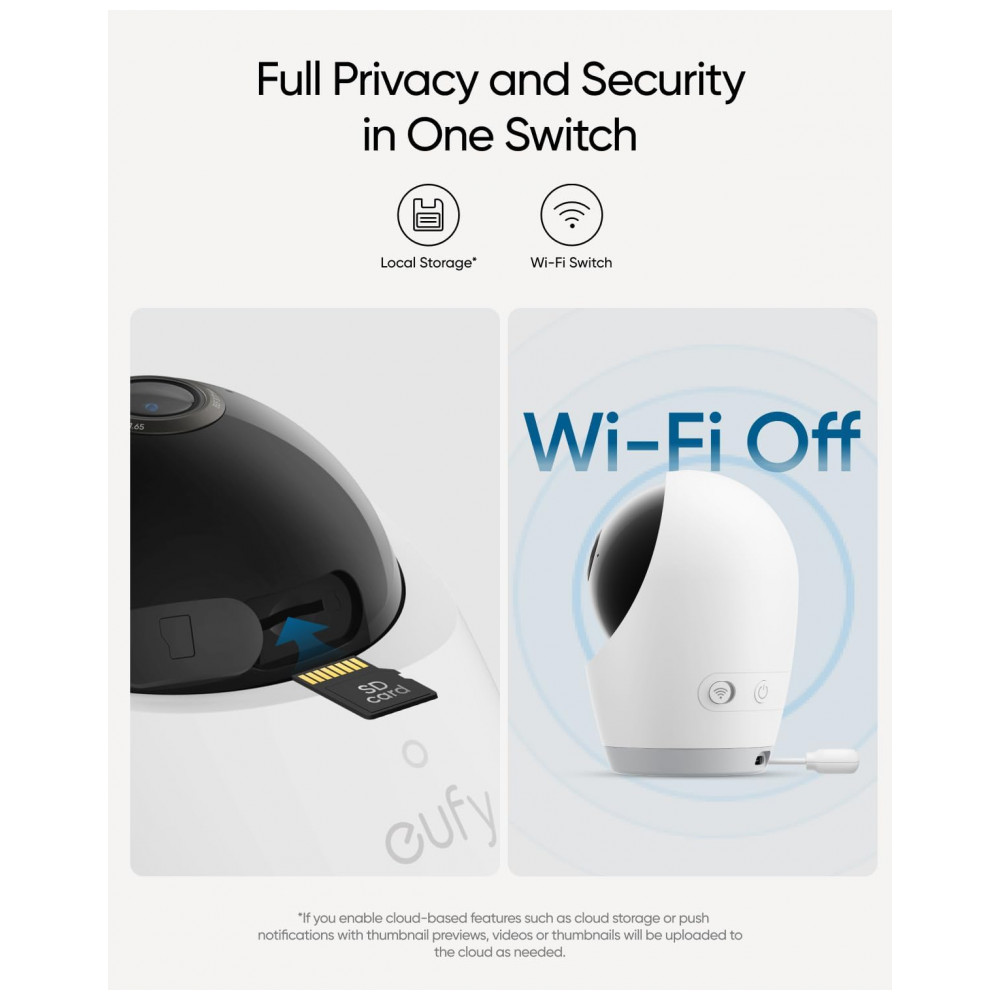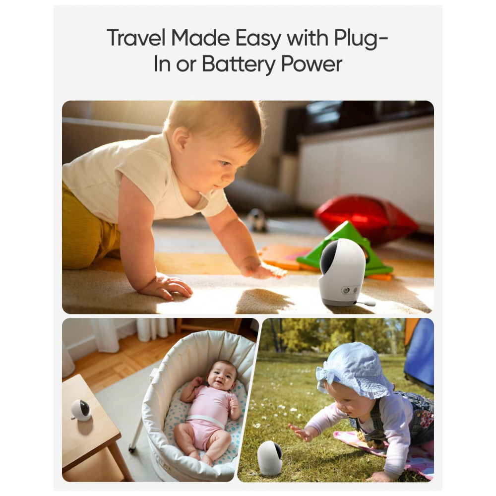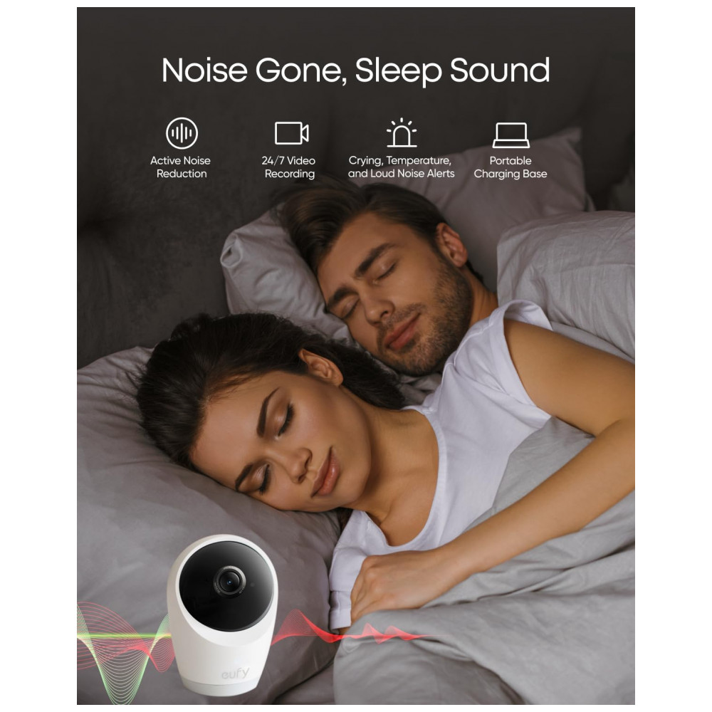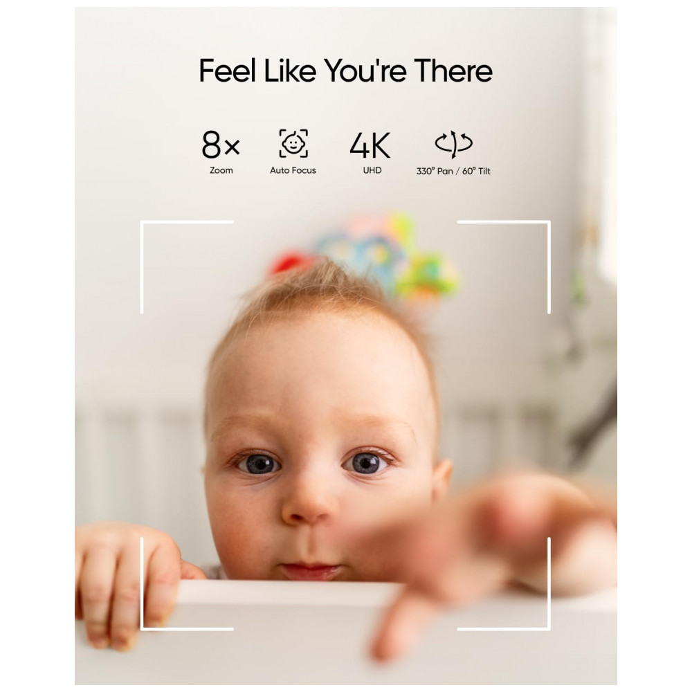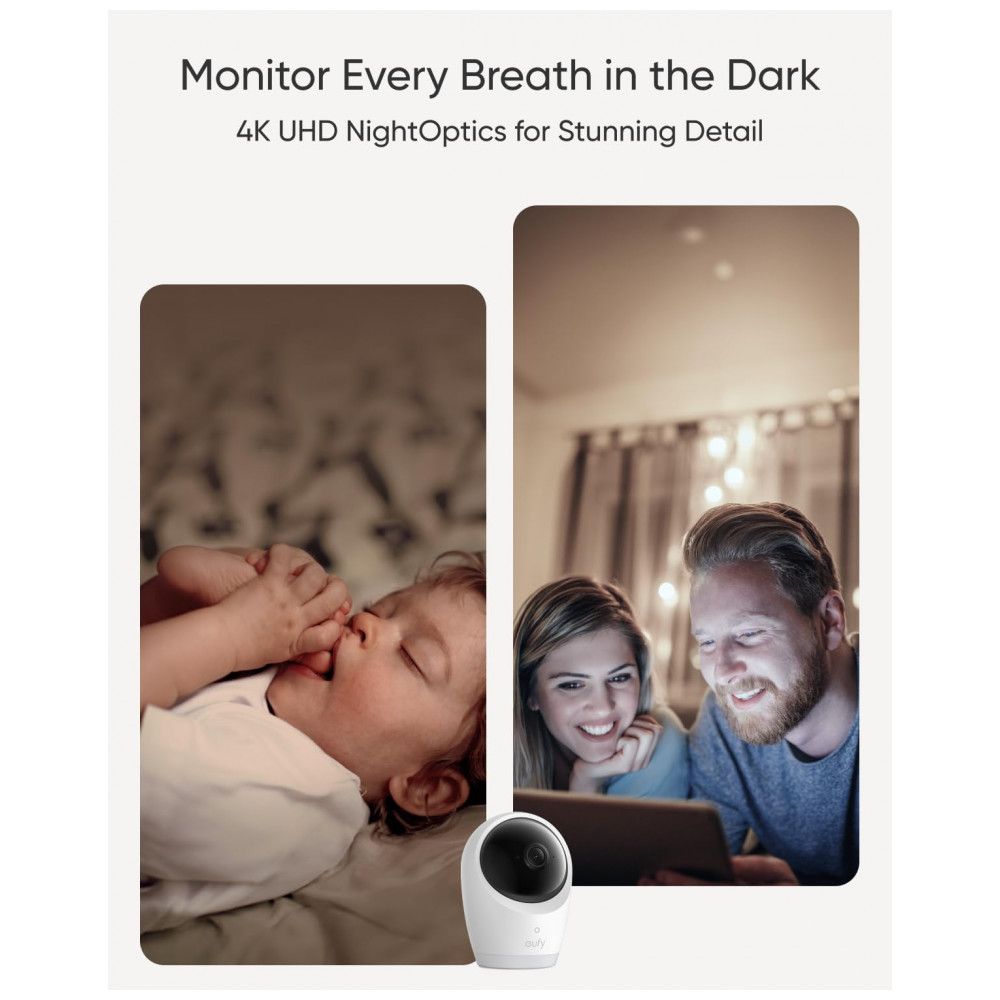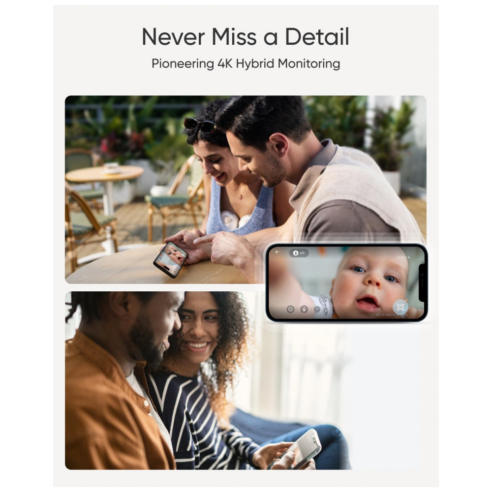 Mantenha um cuidado constante com o Monitor de Bebê eufy Security E21 com monitoramento híbrido. Verifique seu bebê de qualquer lugar em casa, com ou sem WiFi. Com resolução 4K UHD, 330 de rotação, 60 de inclinação e zoom 8X, você não perderá nenhum detalhe, inclusive no escuro graças à visão noturna. Compatível com até 5 dispositivos, permite compartilhar com a família. Portátil, com bateria de 5,000mAh, ideal para viagens. Tecnologia de redução de ruído, gravação 24/7 e privacidade total com criptografia AES128. Descubra uma maneira inteligente de cuidar do seu bebê!