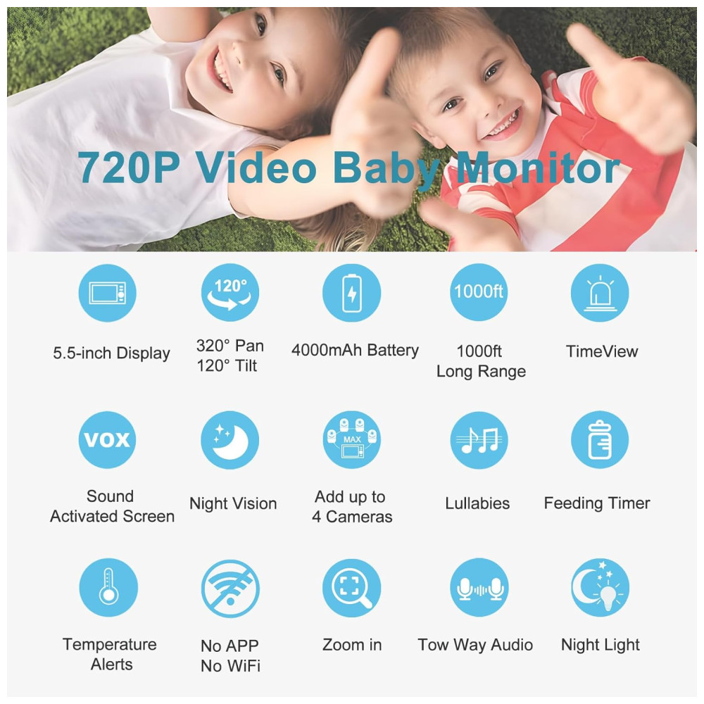 Paz de Espírito para os Pais: O monitor HelloBaby proporciona vídeo contínuo de alta definição 1080p, visualizado em uma tela de 5,5″ 720P, para que você se sinta sempre próximo do seu bebê. Com o recurso ativado por voz, você não perderá nenhum momento, oferecendo aos pais tranquilidade enquanto realizam suas atividades diárias.