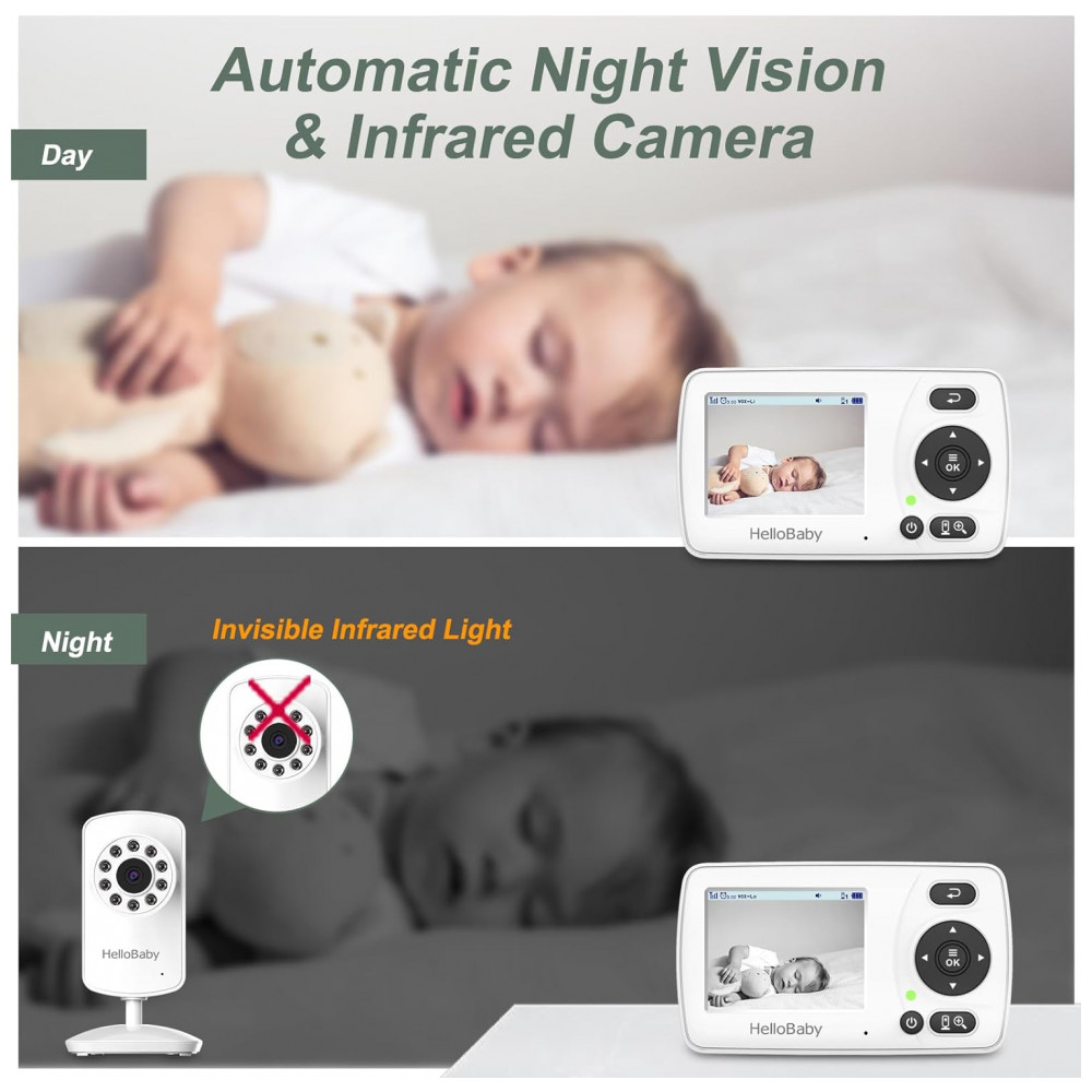 Babá Eletrônica HelloBaby com Câmera Áudio Visão Noturna e Modo VOX